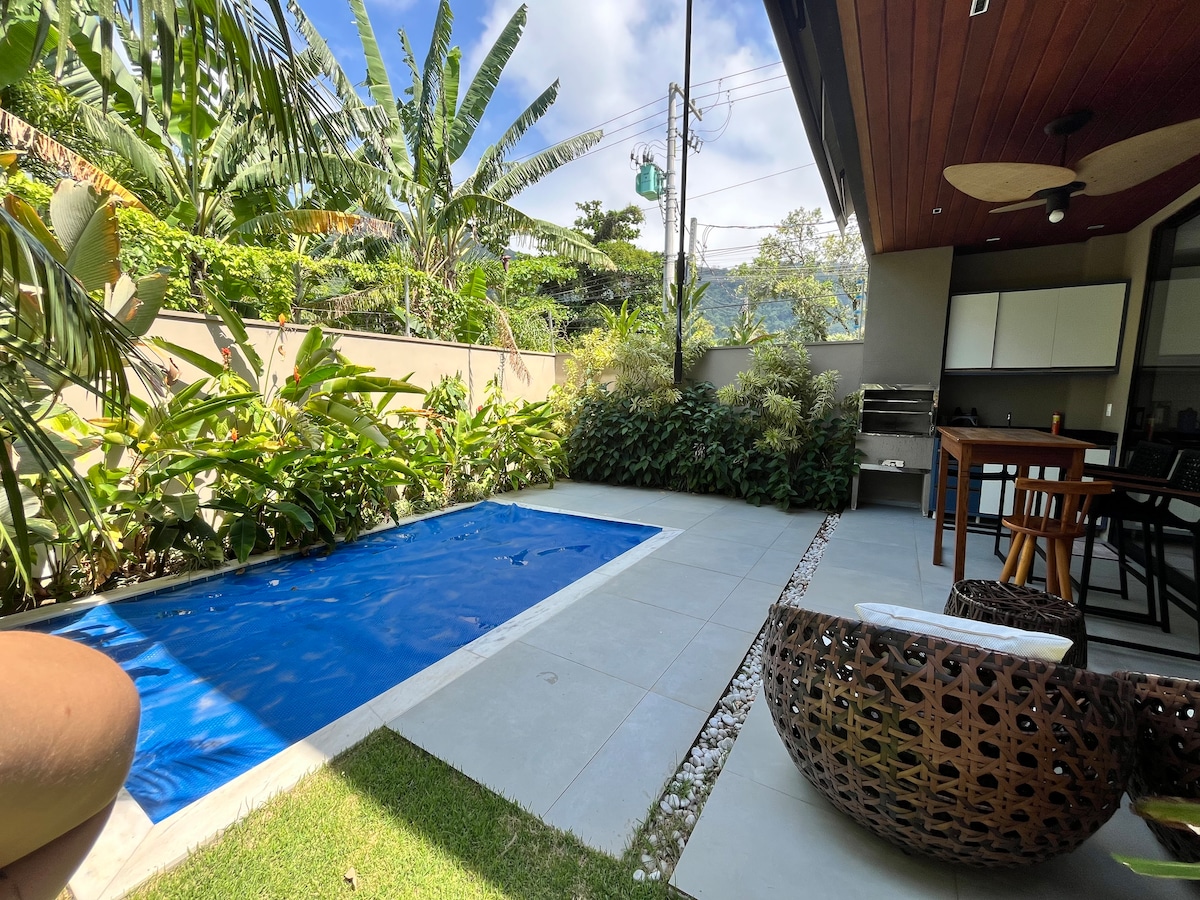 A White House de 200 m² mobiliado com piscina e vista para a mata atlântica, para Ilha Bela e para o Oceano Atlântico. Zona exterior de Jardim com 300 m² e Paisagismo Nativo. A sua casa de férias tem lotação para 11 pessoas. Encontra-se a 700 m da praia de “Barequeçaba" a pé, a 1.8 km da praia de Pitangueiras, a 2 km da Praia de Guecá, a 5 km do centro de São Sebastião, a 12 km da Praia de São Francisco, a 12 km de Toque Toque Grande, 17 km de Toque Toque Pequeno e a 21 km da Praia de Maresias.