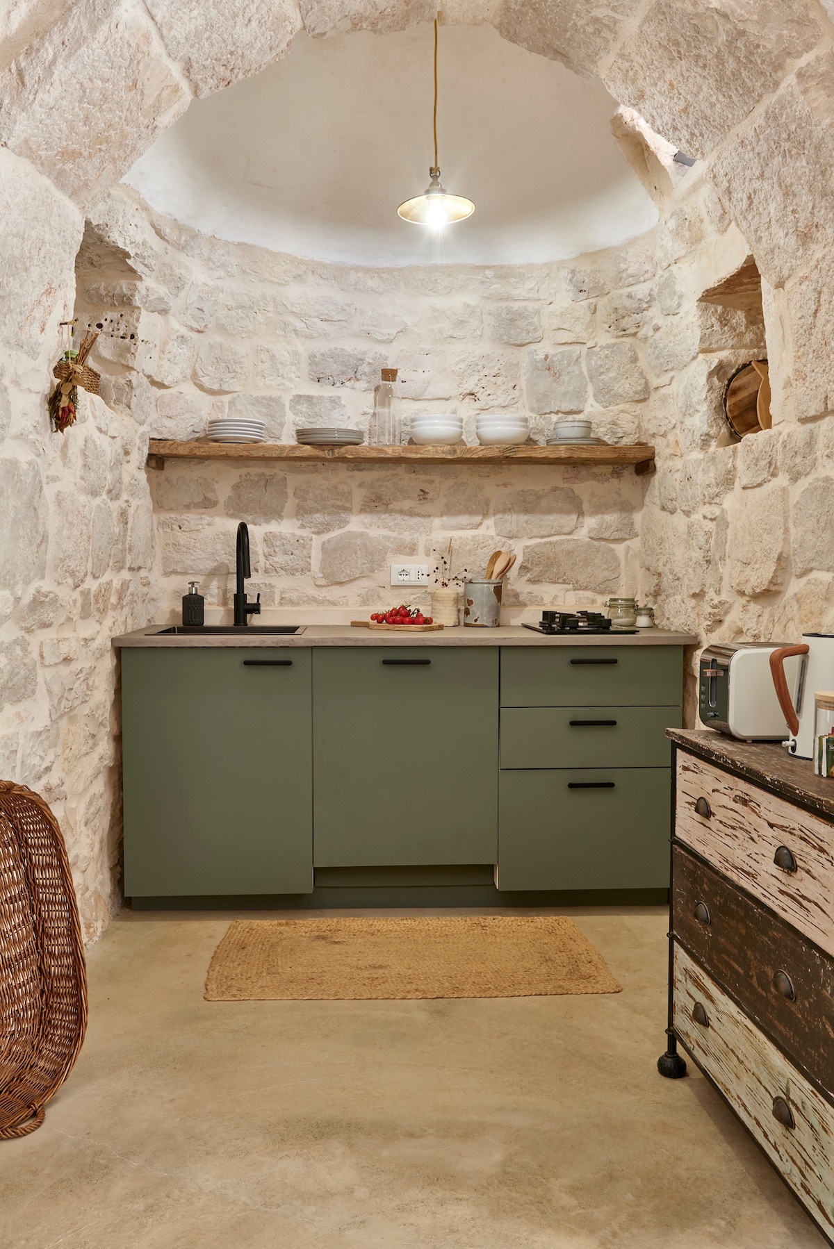 La casa es un trullo del siglo XIX, completamente renovado, equipado con calefacción y aire acondicionado, televisor inteligente y conexión Wi-Fi. El dormitorio está equipado con una cama doble con mesitas de noche, lámparas de lectura y un armario. En la habitación, equipada con nevera, microondas, tostadora y cafetera espresso, hay un sofá cama; puedes cocinar y cenar en una mesa para 4 personas. Desde la habitación se puede acceder al baño equipado con lavadora, agua caliente, todos los accesorios del inodoro, lavabo, bidé y ducha con cabina.