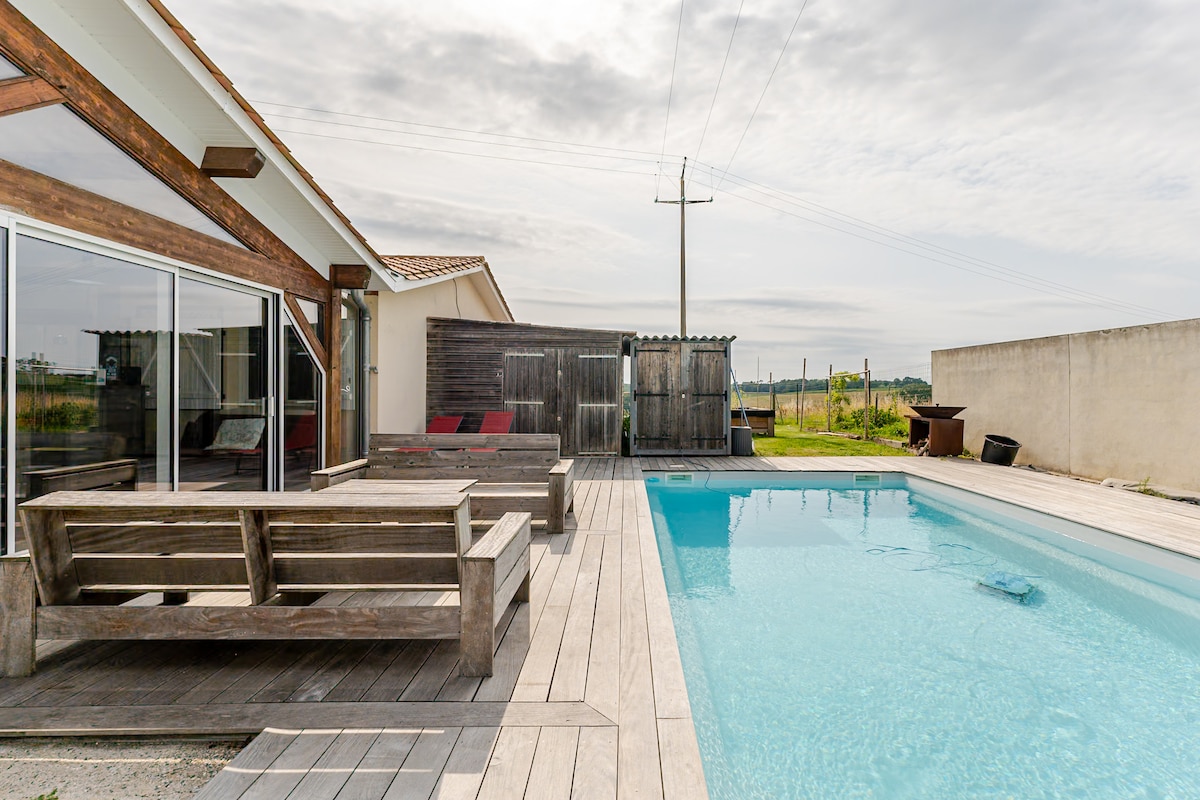 Encantadora casa de campo en el piso superior, aislada de la casa principal, en un entorno tranquilo y silencioso. Disfrutarás de la campiña circundante, el río y sus playas en verano, así como de la piscina, el jardín y la terraza. Un lugar perfecto para desconectar. Entre el Garona y el Canal, cerca de lugares históricos y turísticos y a dos pasos de los viñedos de Burdeos, las opciones para pasear son múltiples. ¡Es importante saber que vivimos con nuestros 4 gatos que ocupan el lugar!