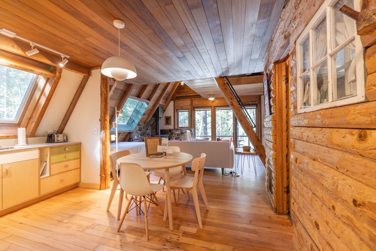 Un río corre a través de él es un encantador marco A situado en un entorno totalmente privado, arbolado rodeado de árboles imponentes, losas de granito cubierto de musgo, y el cristalino Index Creek corriendo directamente debajo. El interior acogedor y cálido cuenta con los clásicos detalles de "cabaña en el bosque", con chimenea de roca de río, paredes de cedro, lavabo de piedra único y bañera rodeada de piedra con patas. El dormitorio del loft se siente alejado del mundo con el sonido del río arrullándote para dormir.