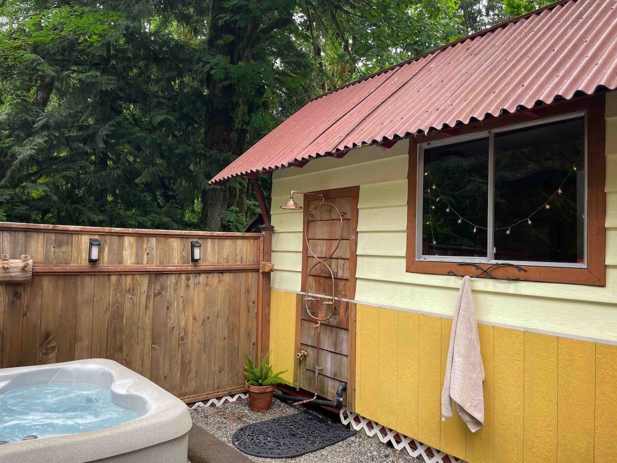 ¡Ahora reservando para la temporada de senderismo! Una pequeña cabaña apta para perros en Baring con zonas de estar privadas al aire libre (¡jacuzzi!), un río al otro lado de la carretera y vistas a la montaña como telón de fondo. El campamento base perfecto para hacer senderismo en las Cascadas, hacer tubing en el río Skykomish, escalar rocas en Index o esquiar en Stevens Pass. Acogedora y tranquila, esta cabaña es ideal para un retiro romántico, una escapada relajante en solitario o un trabajo remoto. ¡A menos de 30 minutos de Stevens Pass y a una hora de la popular ciudad bávara de Leavenworth!