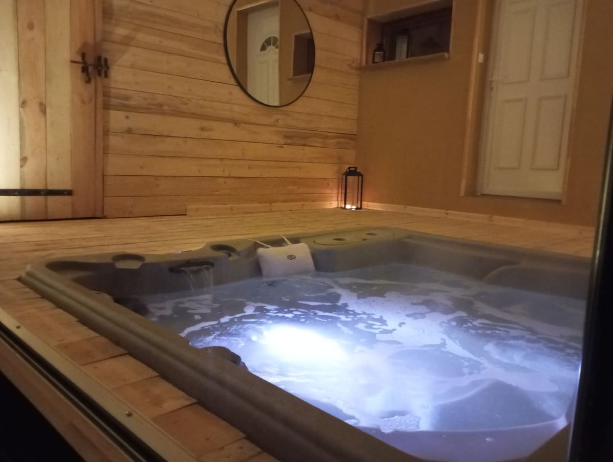 alojamiento situado en una zona verde, con magníficas vistas al vergé y nuestras hermosas montañas , terraza privada con jacuzzi que da acceso directo a la habitación. Un rincón relajante con jardín privado de cerca de 40 m2 o también puede descansar,terraza + barbacoa accesible para usted y sus hijos. Damos la bienvenida a 4 personas 2 personas en una cama sofá en la sala de estar ,y otras 2 personas en la habitación