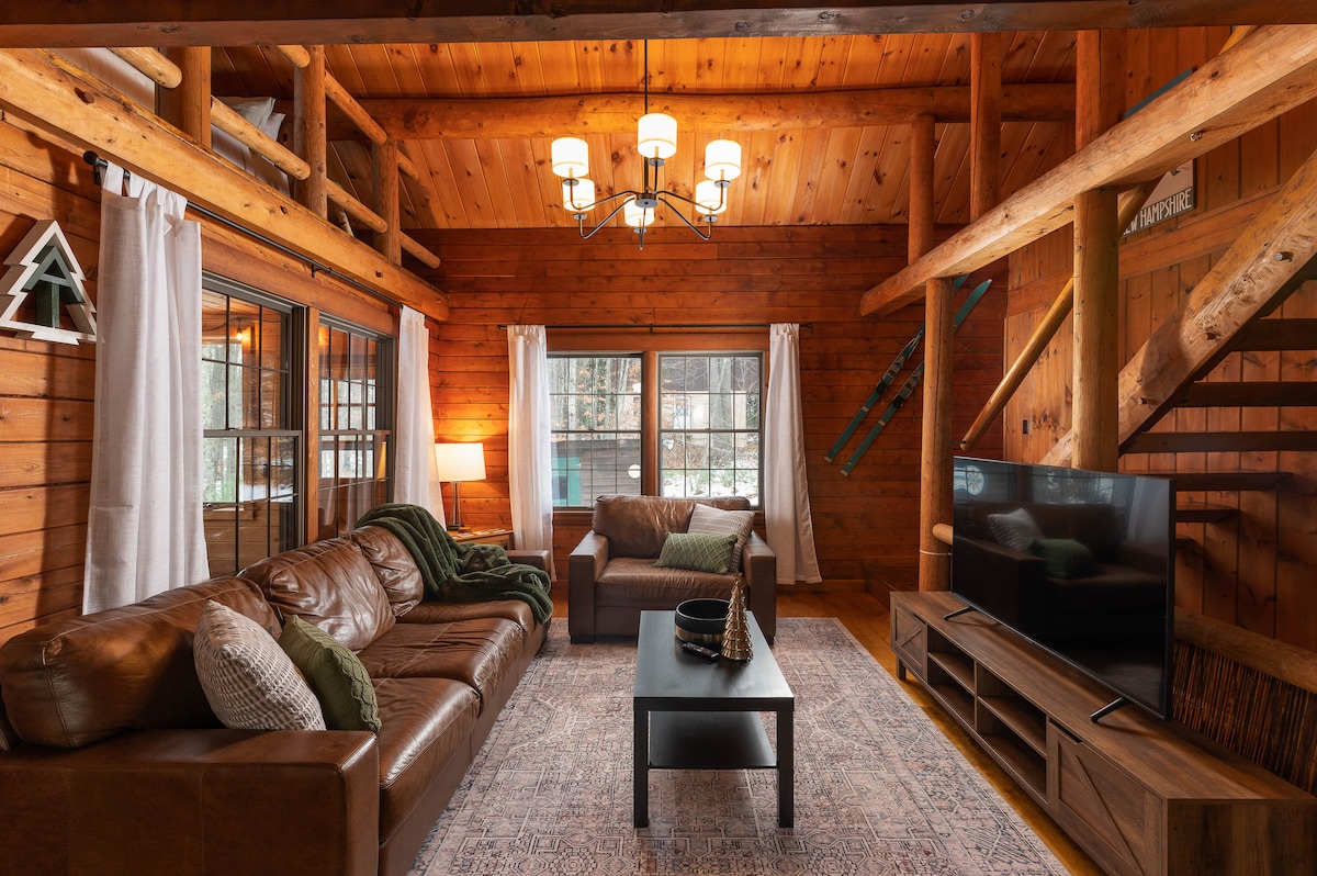 Fresh snow on ski slopes! Discover the charm of Moose Cabin, a newer log cabin in the heart of the White Mountains. This cozy retreat offers the perfect getaway for couples or solo adventurers seeking relaxation or a bit of inspiration. The spacious farmer's porch is ideal for unwinding after a day of exploring the area, while the cabin itself is equipped with everything you need for a comfortable and productive stay. Located just 10 minutes from North Conway, hiking trails, and attractions.
