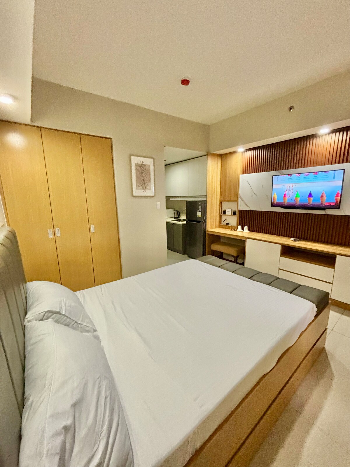 Un estudio luminoso de inspiración mediterránea en Baseline Prestige, en la zona residencial de Cebú, diseñado para disfrutar de la ciudad y de escapadas a la isla. Despiértate con suaves tonos costeros, trabaja en fibra rápida y luego camina a cafés, centros comerciales y hospitales a pocos minutos de distancia. Comodidad de hotel con detalles prácticos: agua potable filtrada, ducha caliente y cocina americana totalmente equipada.