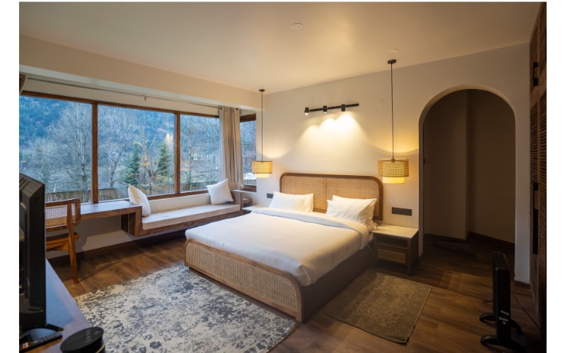 Nestled at the foot of the enchanting Jogni Waterfalls, our Mountain View Suite offers a tranquil escape in the heart of the Himalayas. Each room boasts breathtaking views of cascading water and lush mountain landscapes, allowing you to immerse yourself in nature’s beauty. Step out onto your private balcony to soak in the serene sounds of the waterfall and the fresh mountain air.