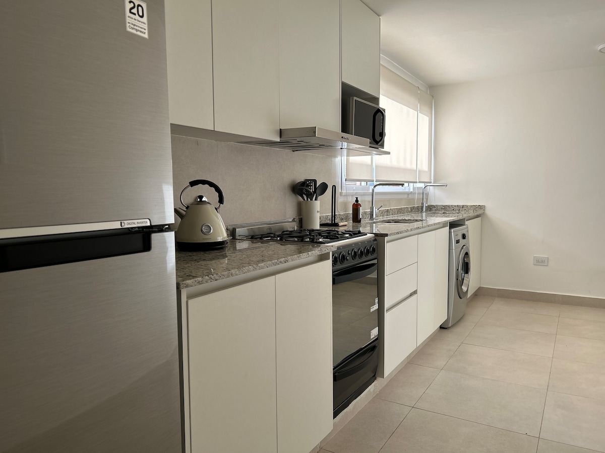Moderno y lujoso departamento. Dormitorio: cama doble queen, sábanas de 220 hilos, frazadas hipoalergenicas, 4 almohadas hipoalergenicas, tv pantalla plana de 40". Baño: bañera con ducha y mampara de vidrio y bidet, toallas y toallones para 4 personas, secador de pelo y artículos de aseo. Living: LED smart tv de 49", sofá cama con cama marinera. Cocina: lavarropa , heladera con freezer, anafe y horno eléctrico, microondas, cafetera ,tostadora y vajilla (4 personas). Plancha y tabla de planchar.
