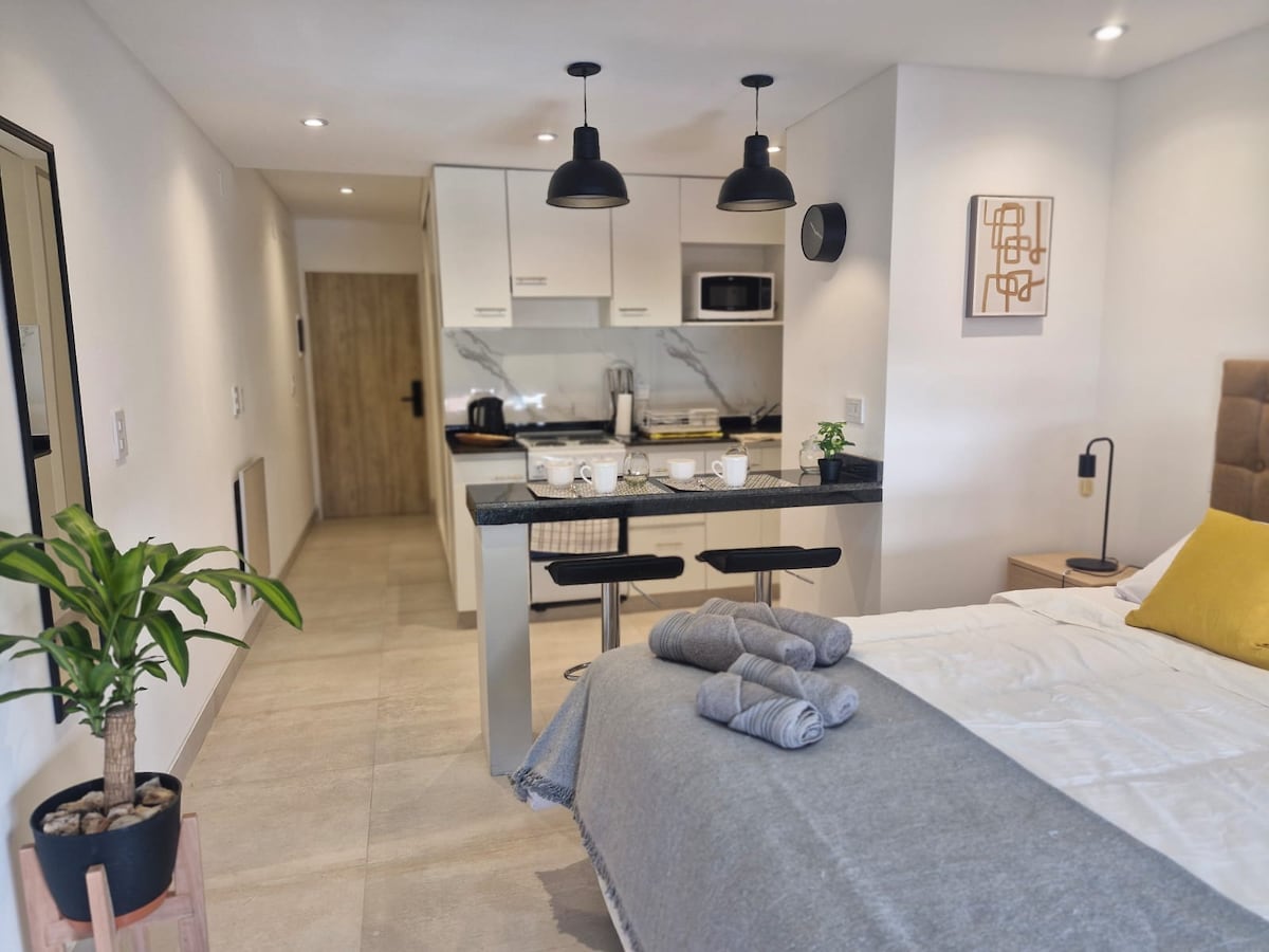 Nuevos departamentos cerca de todo lo imprescindible .Una experiencia adaptada a tu estilo de vida, un espacio para trabajar y disfrutar. A una cuadra de la plaza principal de Salta, en el corazón de la ciudad. Nuestro dpto completamente remodelado, dispone de una habitación para dos personas, kitchenette equipada y todo lo necesario para turismo o negocios en Salta. En RentUp Suites queremos que te sientas en casa, cada mañana podes contratar el desayuno que no está incluido en la tarifa.