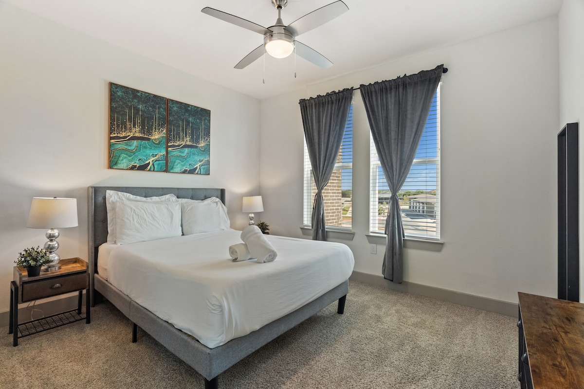 Disfruta de una estancia moderna y cómoda en Austin. Este lugar cuenta con una elegante sala de estar, cocina totalmente equipada, dormitorio principal con cama tamaño king y un segundo dormitorio con cama tamaño queen. Los huéspedes también tienen acceso a excelentes servicios: piscina, gimnasio y sala de conferencias. Ubicado a solo 15 minutos del estadio Q2 y The Domain. Perfecto tanto para viajes de placer como de negocios, con una limpieza impecable y un ambiente acogedor para que te sientas como en casa.