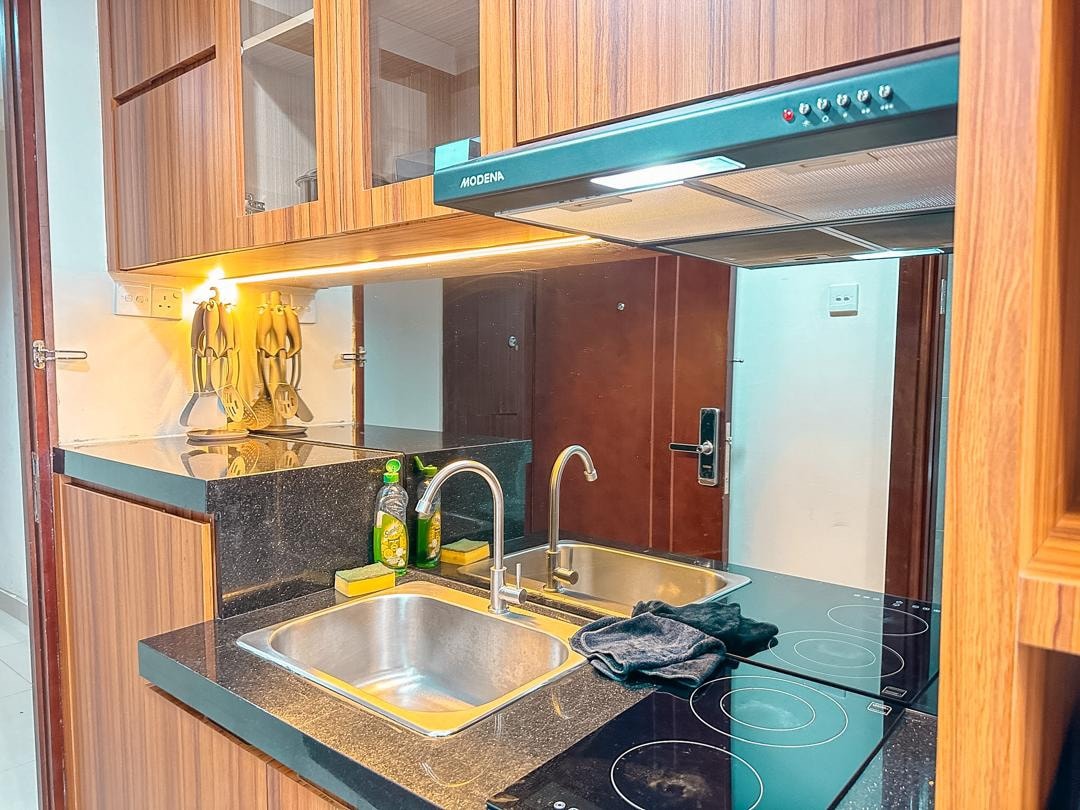Located at the 53th floor (seaview) of the pollux habibie apartment, the studio has been furnished and designed in accordance to welcome traveler looking for relax and warm atmosphere. If you feel the water moving slowly when you are shower, you can open the floor drain. after taking shower , please remember to close it again