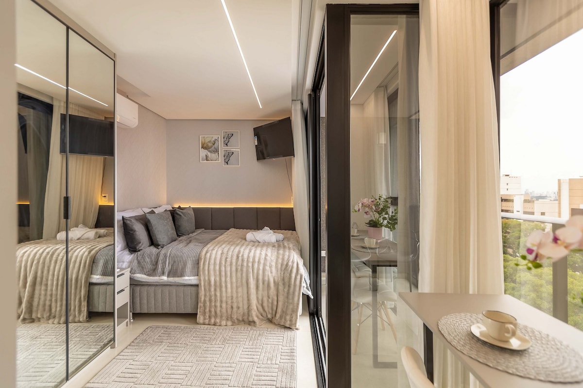 Estudio cálido, sofisticado y espacioso en Batel