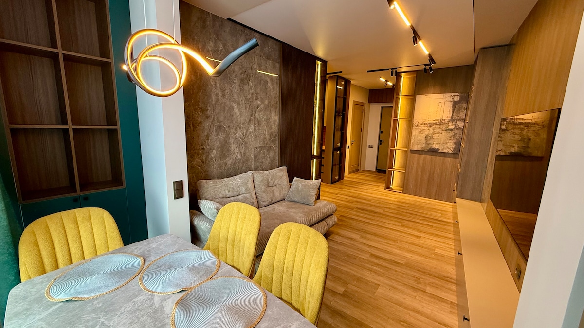 The stylish, panoramic and comfortable apartments are suitable for 4 people! The apartments are located in the elite residential complex Alliance Palace, in which on the ground floors is a world-class living room Marriot. This is the first coastline! The apartments have a gorgeous panoramic view of the sea, promenade, singing fountains, Justicia, and a new modern recreation area. The infrastructure around is very developed, restaurants, McDonald’s, pharmacies, shops, etc.