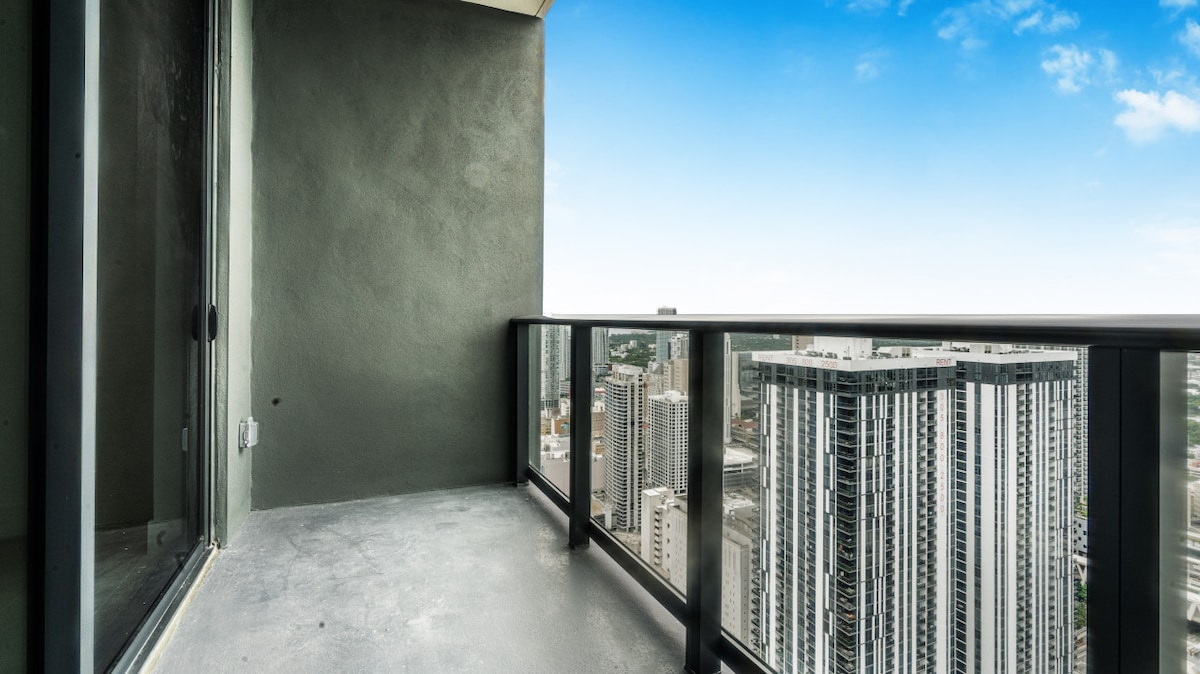 Impresionante 1BR en el piso 49 con vistas directas a la bahía de Biscayne y al río Miami, ¡el más alto en Icon Brickell! Con vista a la piscina de resort más grande de Florida. Elegante unidad con cama tamaño king y sofá cama (capacidad para 4 personas). Spa de clase mundial, clases de yoga, gimnasio y solárium incluidos. Walk Score 99: pasos hasta Brickell City Centre, restaurantes y vida nocturna. ¡Vida de lujo en su máxima expresión! Lee la descripción completa, las reglas de la casa y los detalles antes de reservar. Al confirmar, aceptas todos los términos, incluidas las políticas de servicios y las reglas de check-in.