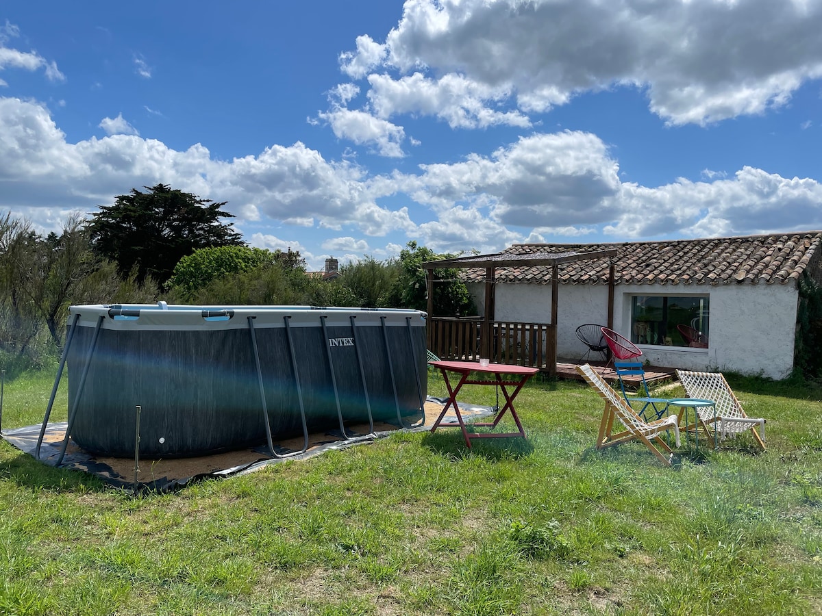 Le Marais Bleu. Isla de naturaleza en el corazón de las marismas bretonas de la Vendée, entre la tierra y el mar, venga a pasar una estancia excepcional en nuestra gran casa familiar. Como si estuviera en medio de las marismas, el vasto terreno arbolado, la piscina climatizada (10 m x 4 m, abierta del 1/05 al 30/09) y las dos casas le ofrecerán paz y tranquilidad, con gran comodidad. Cerca de las playas salvajes y el bosque, a 10 minutos en coche o a 25 minutos en bicicleta por los caminos de las marismas, pero también de Noirmoutier y las tiendas.