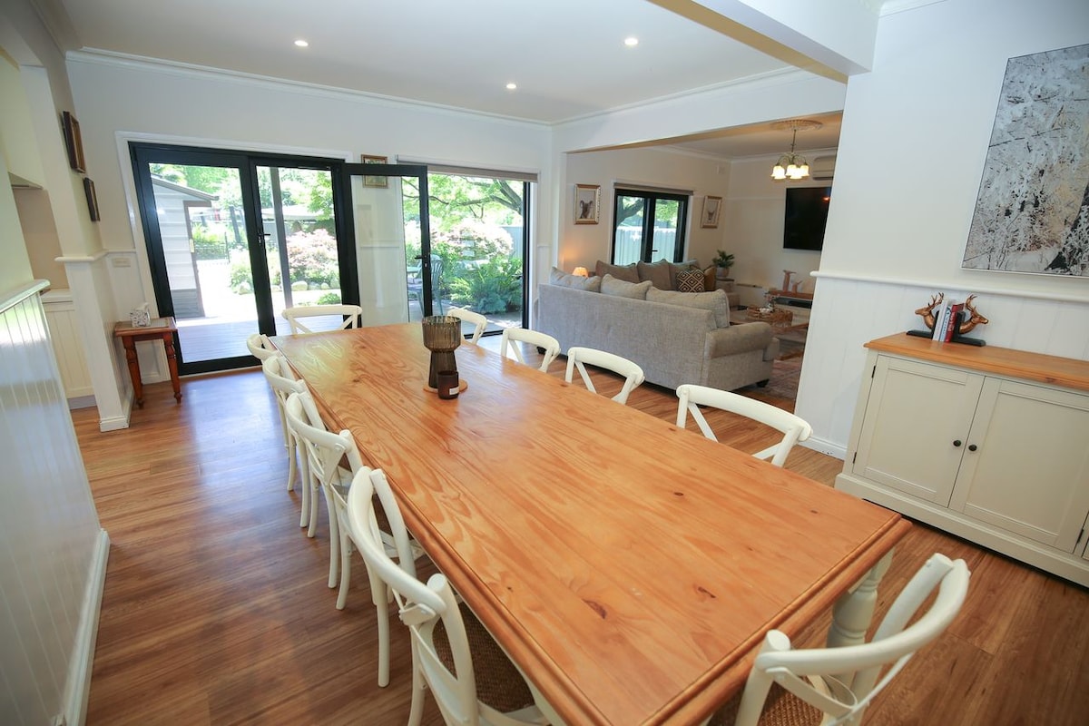 @fairviewbeechworth Construida en 1885, Fairview Cottage es una gran base para explorar Ovens River Valley, incluidas las bodegas, Murray to Mountains Rail Trail, Bright, Mt Buffalo y King Valley. La casa tiene 3 dormitorios + 1, porche envolvente, chimenea, aire acondicionado, wifi, lavandería, cocina bien equipada, aparcamiento, zona al aire libre y amplios jardines con privacidad. Situada a 800 metros del corazón de las tiendas y cafeterías de Beechworth y a solo unos minutos del lago Sambell, de senderos para caminar y montar y de los jardines chinos.