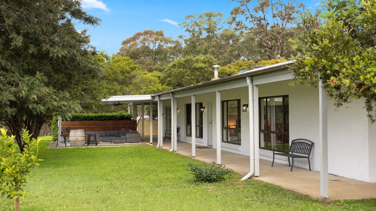 Casa de estilo colonial recientemente renovada y catalogada como patrimonio que se respalda directamente en el campo de golf Branxton con hermosas vistas sobre el 8º verde. Características de la casa pisos pulidos, sofás de cuero, una gran terraza con vistas al campo de golf, aire acondicionado por conductos, televisión de pantalla grande y chimenea de combustión. A 11 minutos de las bodegas, restaurantes y campos de golf de Hunter Valley. Cerca del centro de Branxton: a una cuadra de pub, tiendas y supermercados. Conveniente punto de recogida para eventos de Hunter Valley.