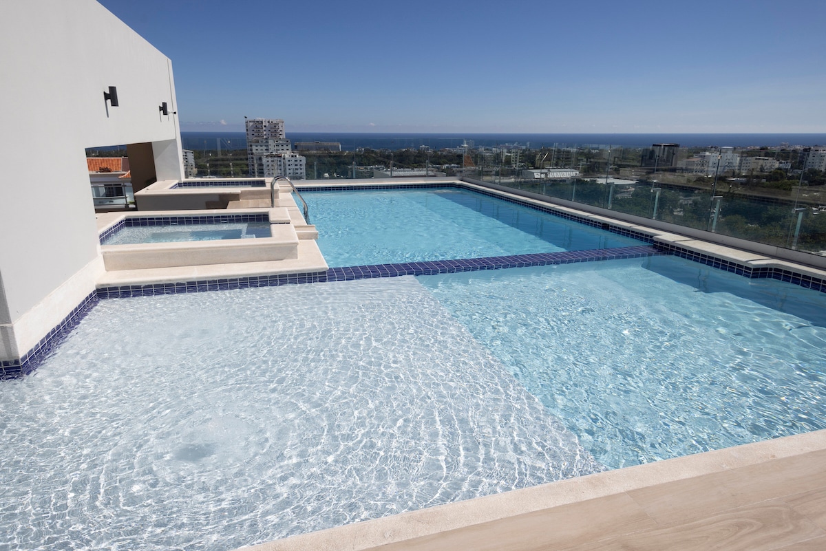 - MEJOR UBICACIÓN en el Centro de Santo Domingo - AZOTEA con Piscina, Gym, Camas para el sol y Área de descanso - Internet de alta velocidad - Estacionamiento privado GRATUITO - Smart TV XL con Amazon Fire 1000+ Películas y Canales - Lavadora/secadora - Recepción y seguridad 24/7 - Cocina de LUJO totalmente equipada - Cama King / Clóset y baño moderno - Balcón PRIVADO con impresionantes vistas - Cerca de centros comerciales, restaurantes, bares, tiendas