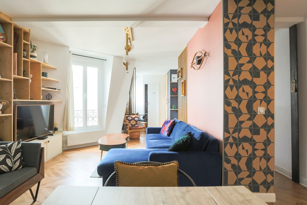Estudio de alta gama junto al Parc des Buttes-Chaumont, uno de los espacios verdes más grandes de París. Apartamento en planta baja que se abre a un tranquilo jardín interior, con acceso a la terraza a nivel del suelo. Completamente renovado y diseñado de forma inteligente para ofrecer el máximo confort en un espacio compacto, combinando la comodidad de un hotel con el encanto de una verdadera casa parisina.