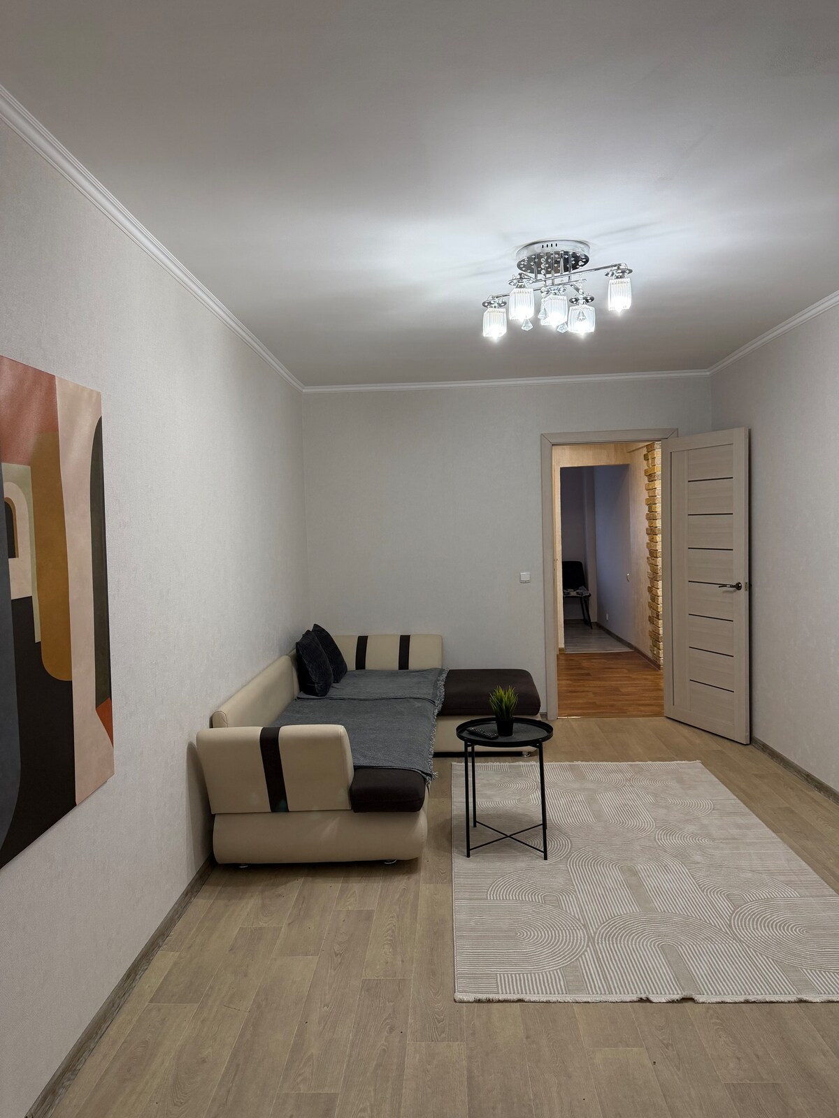 ¡El departamento es como se muestra en la imagen! Todos los muebles y electrodomésticos son nuevos. Las fotos están actualizadas desde el 1 de septiembre de 2020. Bonita zona de la ciudad, desde donde es conveniente llegar a cualquier lugar (estación de autobuses, aeropuerto, estación de tren). Tiendas, bancos, supermercado. Para los huéspedes en estacionamiento en el patio o estacionamiento de pago está cerca. Hay todo lo que necesitas para una estancia cómoda, a saber: una cama grande y suave, un televisor inteligente, Internet Wi-Fi, un sofá. En la cocina hay una tetera, estufa eléctrica, nevera y microondas, lavadora.