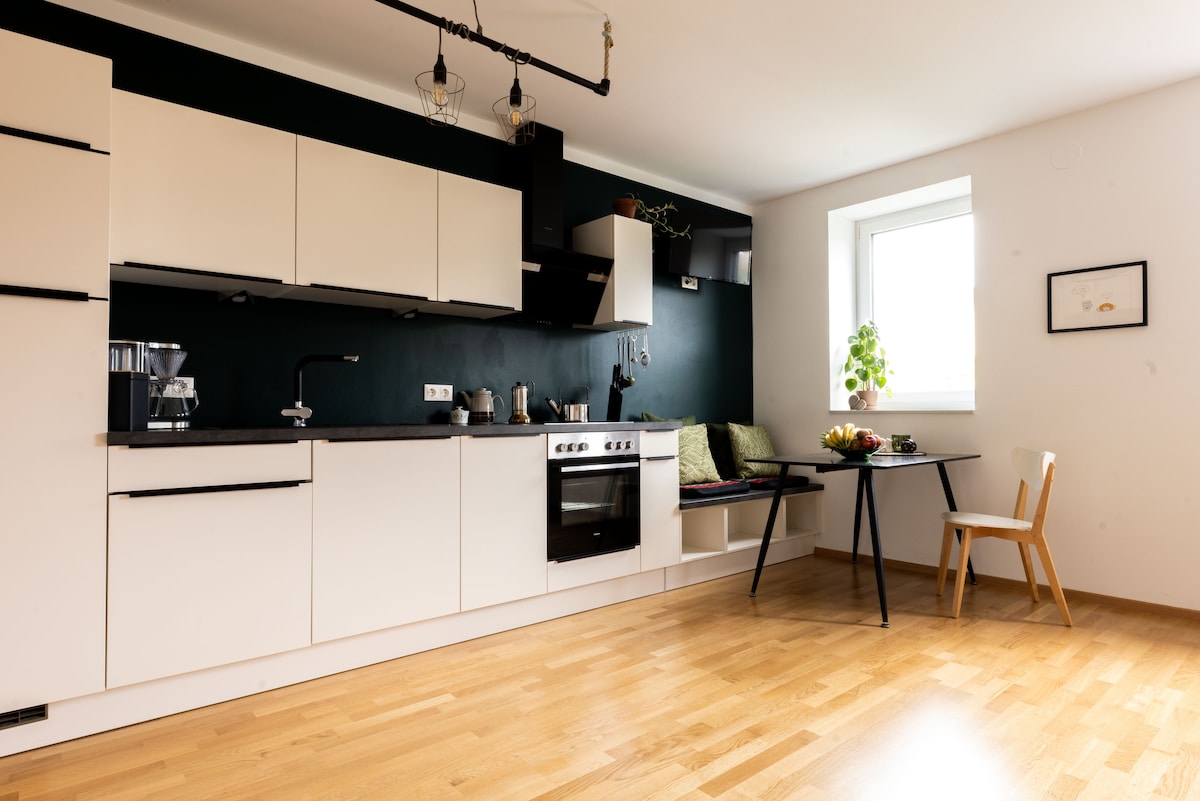 Entra en la comodidad de tu elegante apartamento en la azotea bañado por el sol, con excelentes instalaciones en el centro de Viena. A solo unos pasos de la vibrante Radetzkyplatz y del río Danubio, el apartamento promete un refugio urbano, a poca distancia a pie de los mejores restaurantes, tiendas, atracciones y lugares de interés de la ciudad. ¡La auténtica vida vienesa en todo su esplendor! Cama tamaño✔ king + sofá cama Sala ✔ de estar de planta abierta. Cocina ✔ Totalmente Equipada Balcón ✔ privado. ✔ Smart TV Wifi de✔ alta velocidad ✔ Aire acondicionado Más información ↓