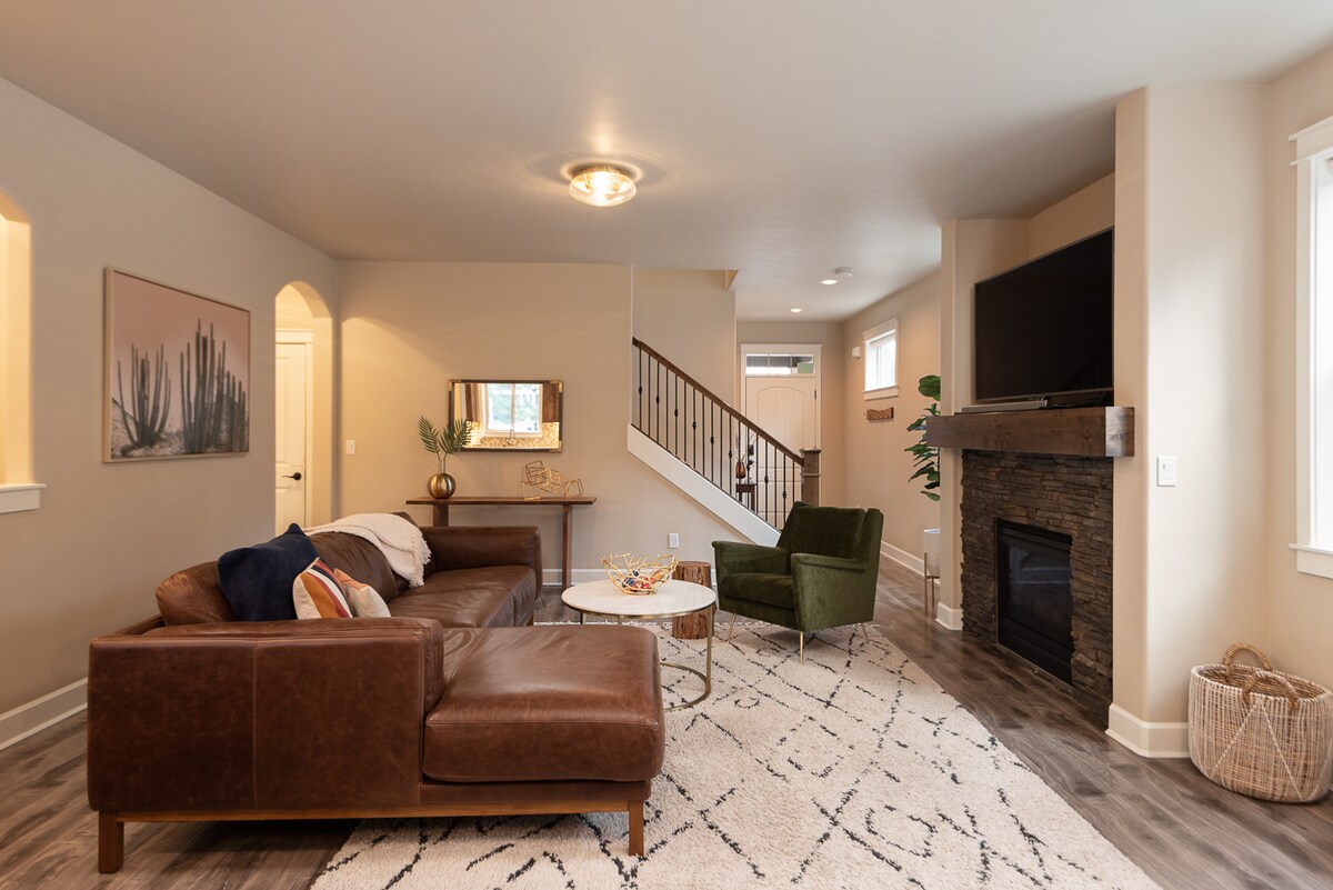 Bienvenido al «Cascade Chalet», perfecto para una escapada en familia o con amigos. Relájate en el tranquilo patio trasero mientras los pinos ponderosos susurran por encima. Por la noche, disfruta del cálido fuego mientras contemplas las constelaciones bajo una acogedora manta. Estás a 30 minutos del monte Bachelor, a 8 minutos de Phil's Trailhead y a poca distancia a pie del centro de la ciudad. La puerta trasera conduce a un amplio patio con muchos asientos y un gran espacio verde al aire libre, parrilla, chimenea de gas y zona de juegos para niños.