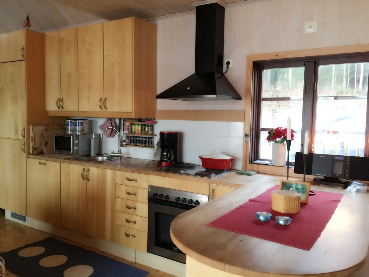 La cabaña Låbyn se encuentra en el borde del bosque con hermosas vistas de un valle. Una red de excelentes senderos forestales pasa por la casa. A poca distancia, hay un lago con una zona de baño y pequeños estanques aislados en el bosque. Wifi gratuito. Electricidad limpia de aerogeneradores. El otoño ofrece setas y bayas, el invierno ofrece proximidad a la pista de esquí y a las pistas de esquí de fondo. El silencio y la atmósfera prevalecen durante todo el año.