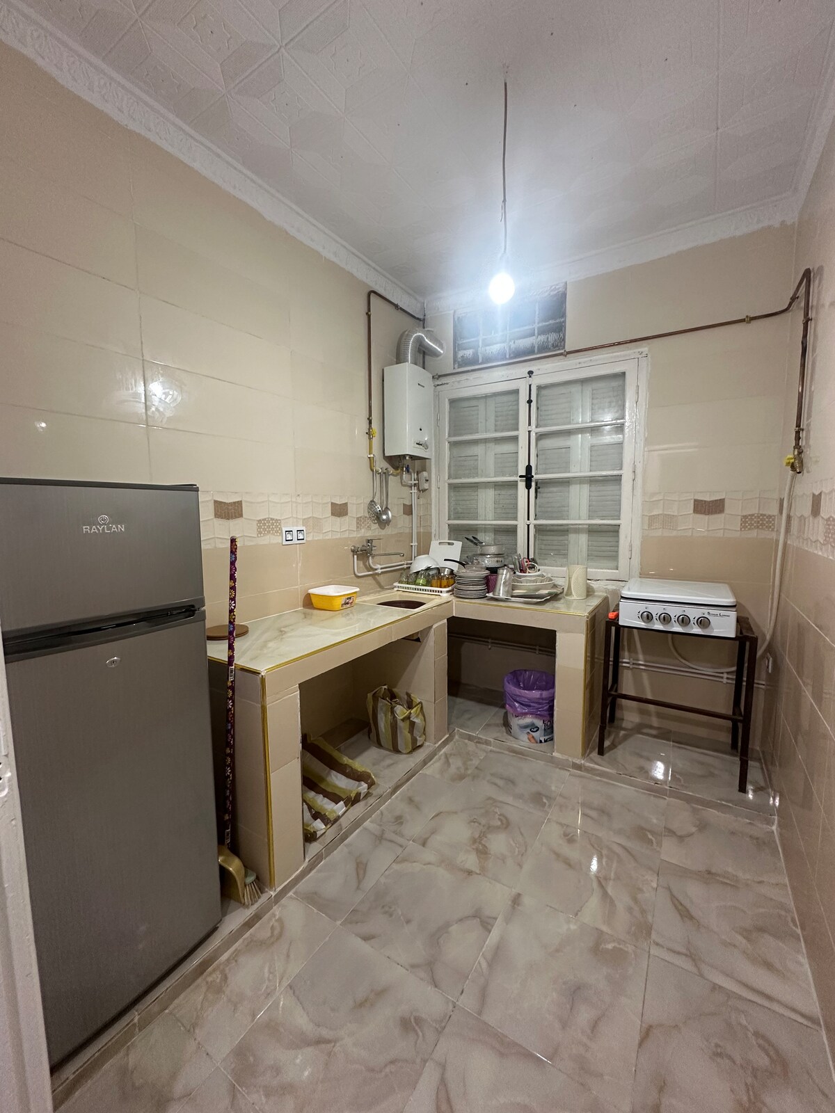 Disfrute de nuestro encantador apartamento situado en una ubicación ideal y tranquila en la ciudad de Dain Temouchent El apartamento incluye: Una habitación con cama doble y TV de 50" Un segundo dormitorio con 2 camas y TV de 32" Un salón con sofá, puf y TV de 55" IPTV y PC Una cocina totalmente equipada Un cuarto de baño moderno con ducha a ras de suelo Wifi rápido y espacio de trabajo Se proporcionan sábanas y toallas En las inmediaciones: Transporte a 2 minutos a pie y restaurantes cafetería superette y mercado