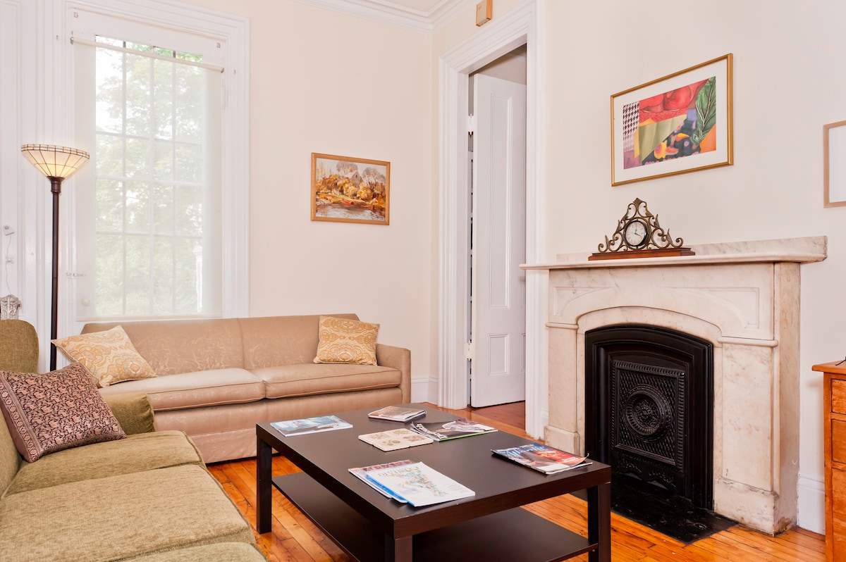 Elegante y lujoso apartamento de piedra arenisca en el South End, perfecto para trabajar o jugar. A 10 minutos del distrito financiero, a 12 minutos de Harvard, a menos de 10 minutos de Fenway y a poca distancia a pie de Boston Common. Casa histórica por excelencia en el distrito de South End de Boston, con techos ALTOS, fantástica luz natural y vistas directas a Columbus Avenue, en medio de todo lo que South End tiene para ofrecer. Plaza de aparcamiento privada en la calle casi seguro que disponible a 1 minuto a pie (debe coordinarlo con el anfitrión con antelación)