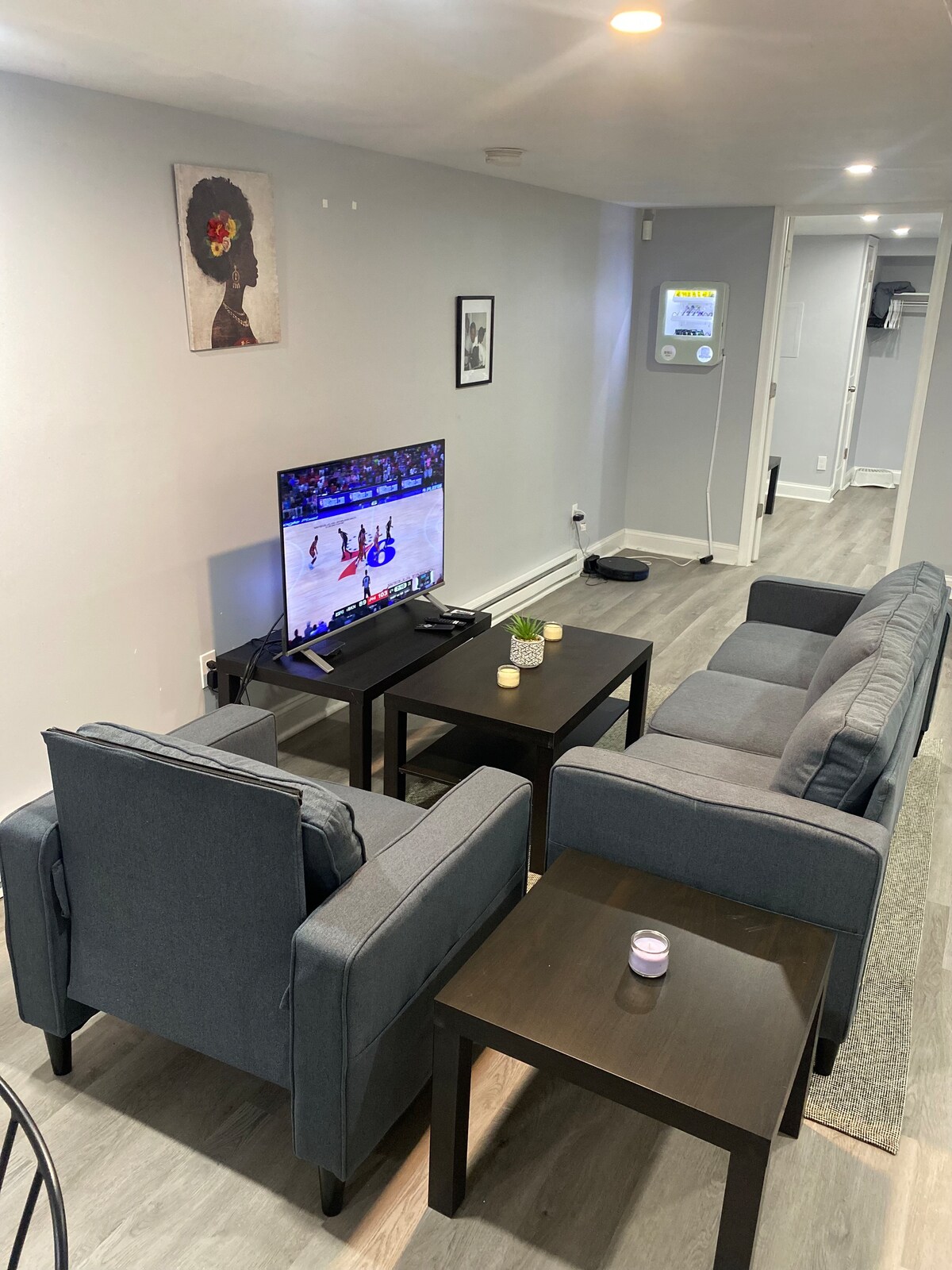 Wifi ✓ rápido a 300 mbps de carga/descarga A ✓ 15 minutos en auto de Filadelfia/aeropuerto El estacionamiento✓ gratuito en la calle siempre está disponible ¡Apartamento espacioso de✓ 800 pies cuadrados! ✓ Ropa de cama y toallas incluidas ✓ Champú, acondicionador y gel ✓ 2 dormitorios y✓ 1 baño Apartamento hogareño✓ moderno con toques de encanto de granja ✓ Cocina pequeña con estufa de gas de inducción, café, té Mesa de✓ comedor para 4 personas ✓ Sala de estar (pantalla plana con películas más nuevas GRATUITAS) ✓consola de juegos de camas tamaño✓ queen Área ✓ del patio con✓ jardín de sillas