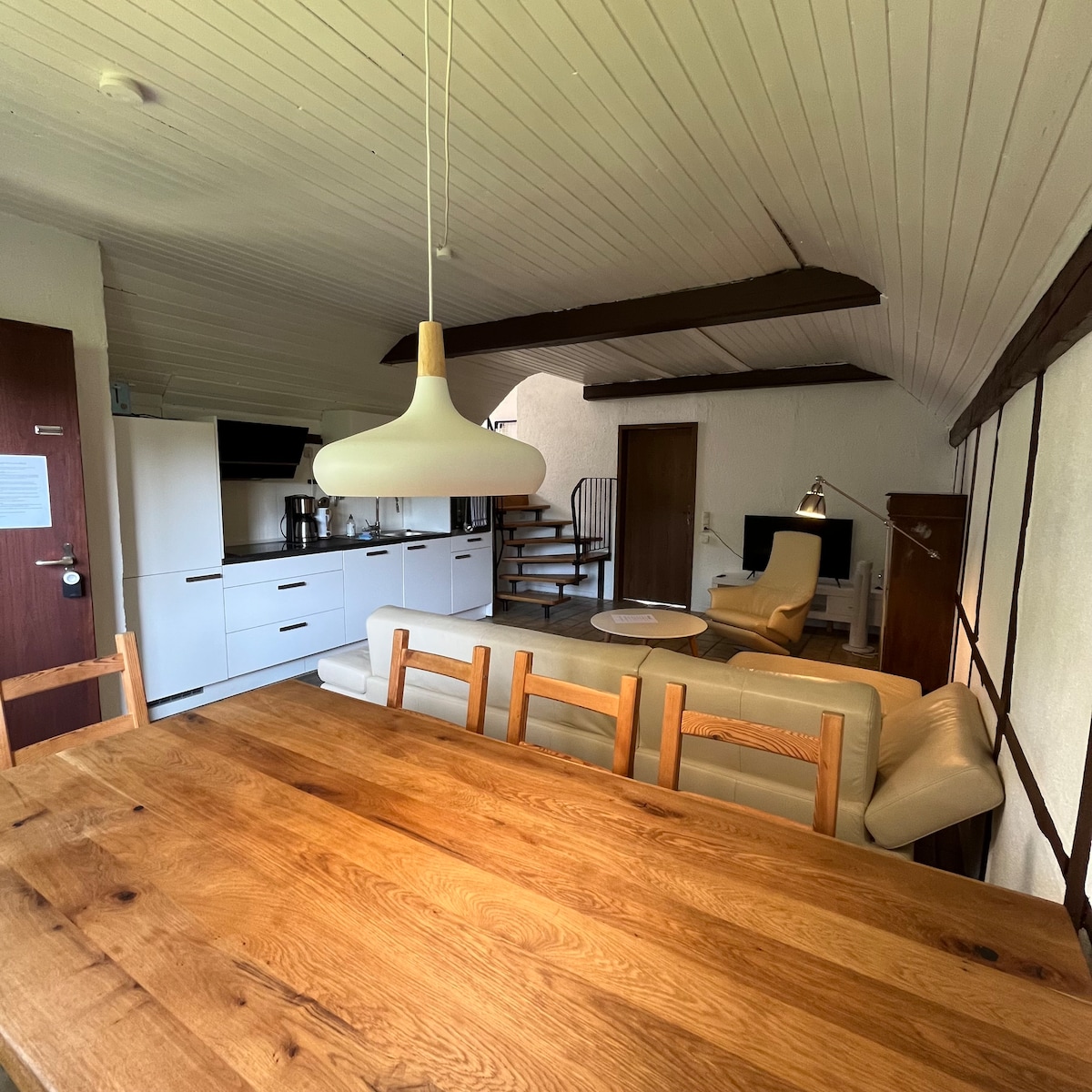 En la estructura del pueblo de Lautertal-Reichenbach, en el sendero certificado "Nibelungensteig" en Odenwald, a poca distancia del famoso Felsenmeer, se encuentra el pequeño cobertizo antiguo equipado según los últimos estándares, una maravilla de espacio inundado de luz: Planta baja: cocina moderna y elegante, sala de estar con sofá cama, estufa sueca, baño con ducha sin barreras, armario accesible, despensa. La escalera de diseño conduce a la primera planta: cama doble, sala de estar, mesa, escritorio con conexión Wi-Fi, terraza privada con vistas al jardín.