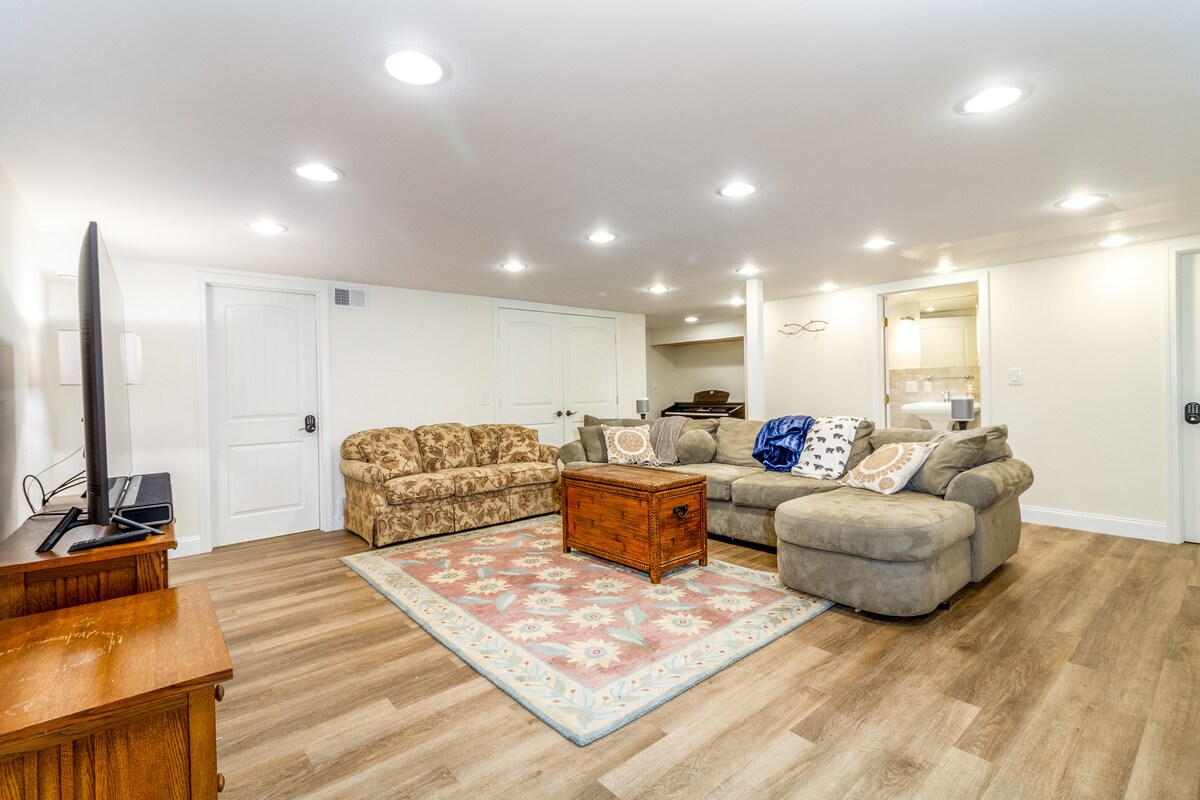 Si buscas un lugar acogedor para relajarte en un pequeño pueblo, con internet rápido y fácil acceso a muchas actividades divertidas, ¡esta casa es ideal! En la planta principal de la casa hay un diseño abierto que incluye una biblioteca, un pequeño bar, un comedor, una cocina, un baño y dos dormitorios. En la planta baja hay un sótano terminado que incluye una gran área familiar con un sofá enorme (perfecto para películas), un espacio de trabajo y un espacio de lavandería. Aparcamiento privado y mucho espacio al aire libre.