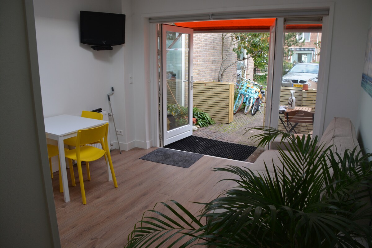 Busy You @ Sea es un estudio completamente renovado, abierto desde marzo de 2024. A un minuto a pie de las dunas. La playa y el centro también están a poca distancia. ¡El lugar para relajarse y descansar! El acogedor estudio con entrada privada (29 m2, espacio abierto) se encuentra en el sótano y está totalmente equipado. Las puertas abatibles dan acceso a tu terraza privada, con vistas al jardín (parcialmente vallado).