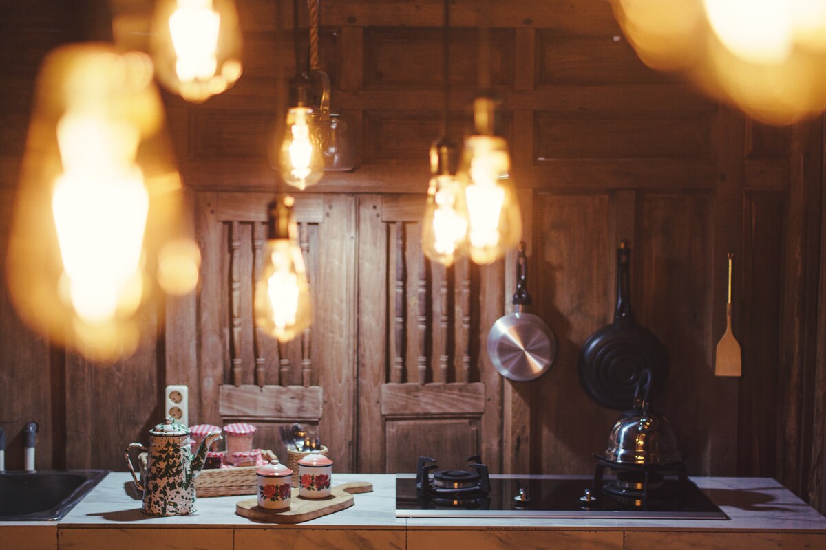 Sé feliz y relájate en esta casa única y tranquila. Impresionantes vistas de nuestro Green Valley y a solo unos pasos del restaurante Lotus Mio. Esta acogedora casa de 2 plantas en el bosque ofrece una piscina privada. En la misma planta se encuentran la cocina, el baño y el acogedor salón, conectados con una terraza tropical al aire libre. Arriba hay un dormitorio con aire acondicionado. Buena conexión wifi en todas partes. Esta romántica casa en el bosque al sur de Yogyakarta está a 1 hora del aeropuerto YIA y es fácil de visitar Borobudur.