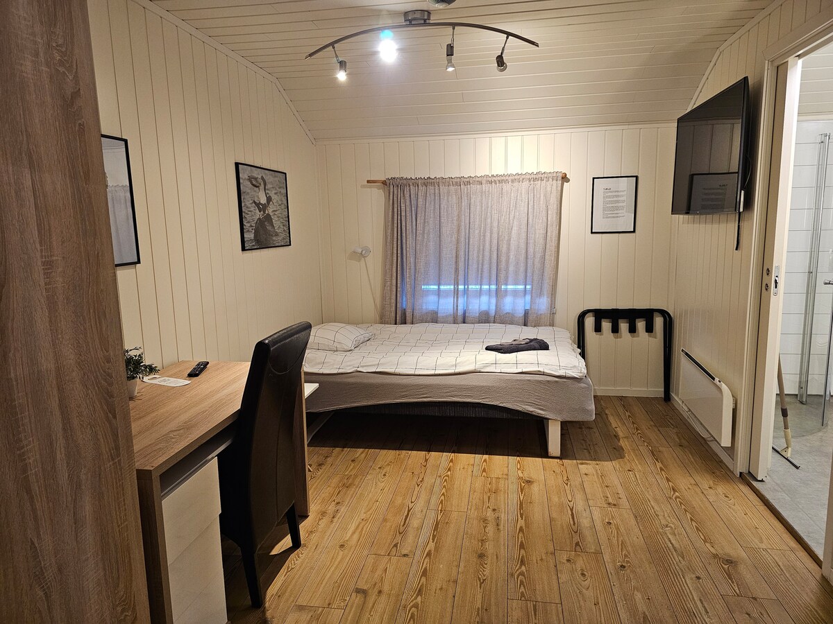 Hybel overnattingssted med sentral beliggenhet og treningsmuligheter. Det du trenger for og klare deg selv. Midt i Båtsfjord. 200 meter fra matbutikk og bensinstasjon rett ved.