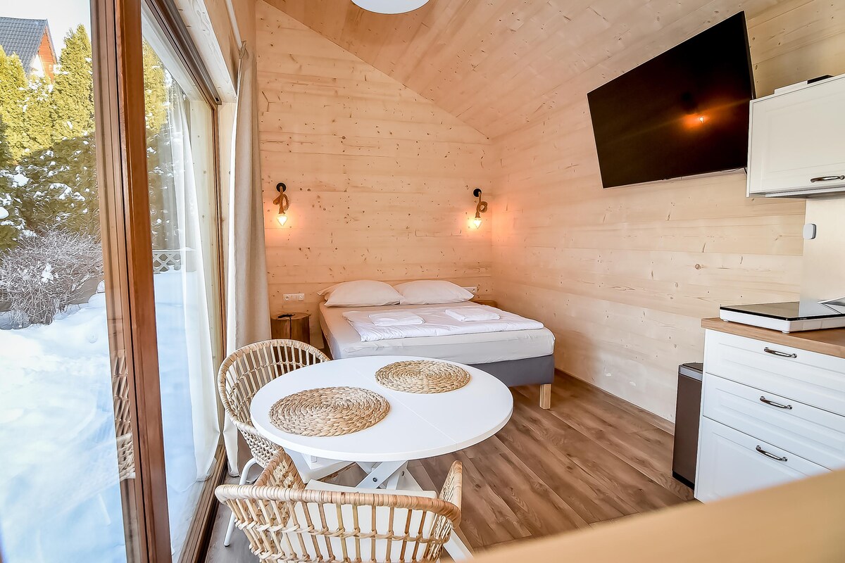 Un lujoso chalet con una hermosa vista del panorama de las montañas Tatra para 4 o 6 personas ubicado en Salamandra (Kościelisko). - dos habitaciones con cerradura con camas dobles, - dos baños con ducha (uno además con bañera), - una sala de estar con un sofá cama para 2 personas con una terraza, - Una zona de cocina con cafetera, inducción, nevera, lavavajillas, platos. Hay una sauna eléctrica de autoservicio gratuita afuera. Cada chalet tiene dos espacios de estacionamiento gratuitos asignados.
