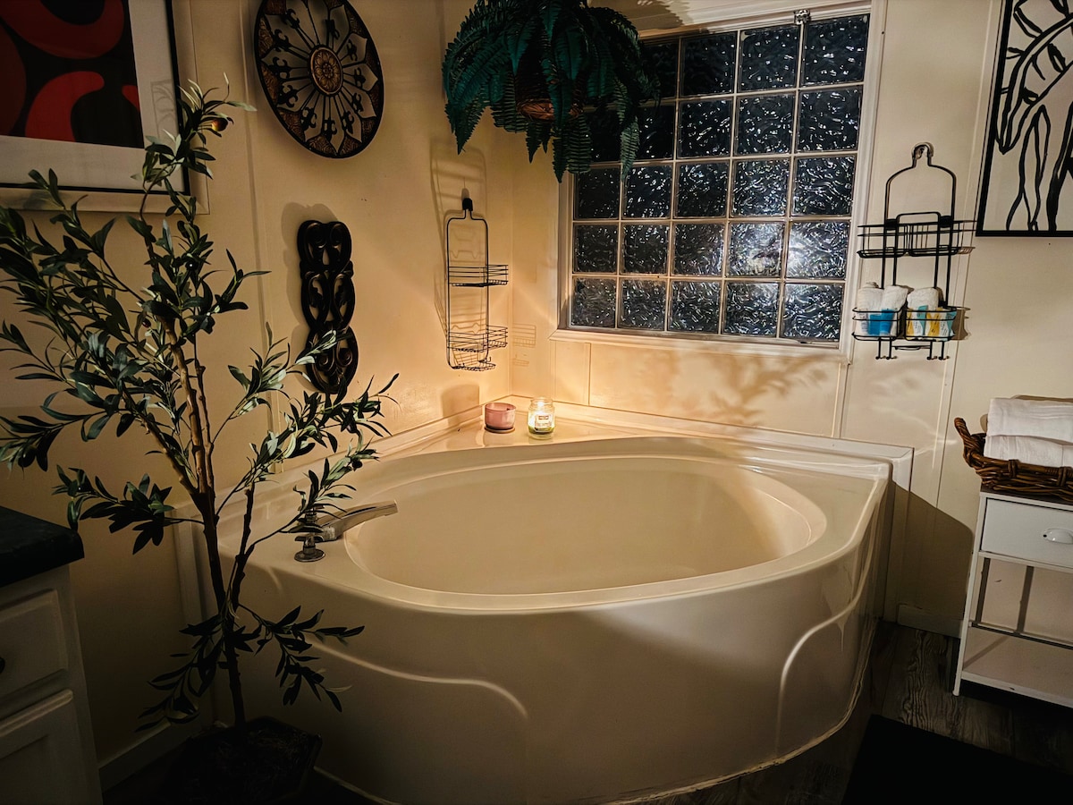 ✔ Private Suite + Exclusive use of entire property during stay ✔ Stunning secluded Lakefront Suite w/ breathtaking sunset views ✔ 2-Tier Deck: SPA, FIREPIT, HAMMOCK & Lounge ✔ Private Dock: Canoe, kayaks, paddleboards, and a 2023 Bentley Pontoon* ✔ Entertainment Galore: 85” TV, Xbox, Foosball, Cornhole, and Board games ✔ Dining + Sleeping Space for up to 4 Adults (2 Queens & 1 Twin Trundle) ✔ Fully stocked Kitchenette + Full Size Fridge + BBQ Grill ✔ Private Pickleball & Basketball Court