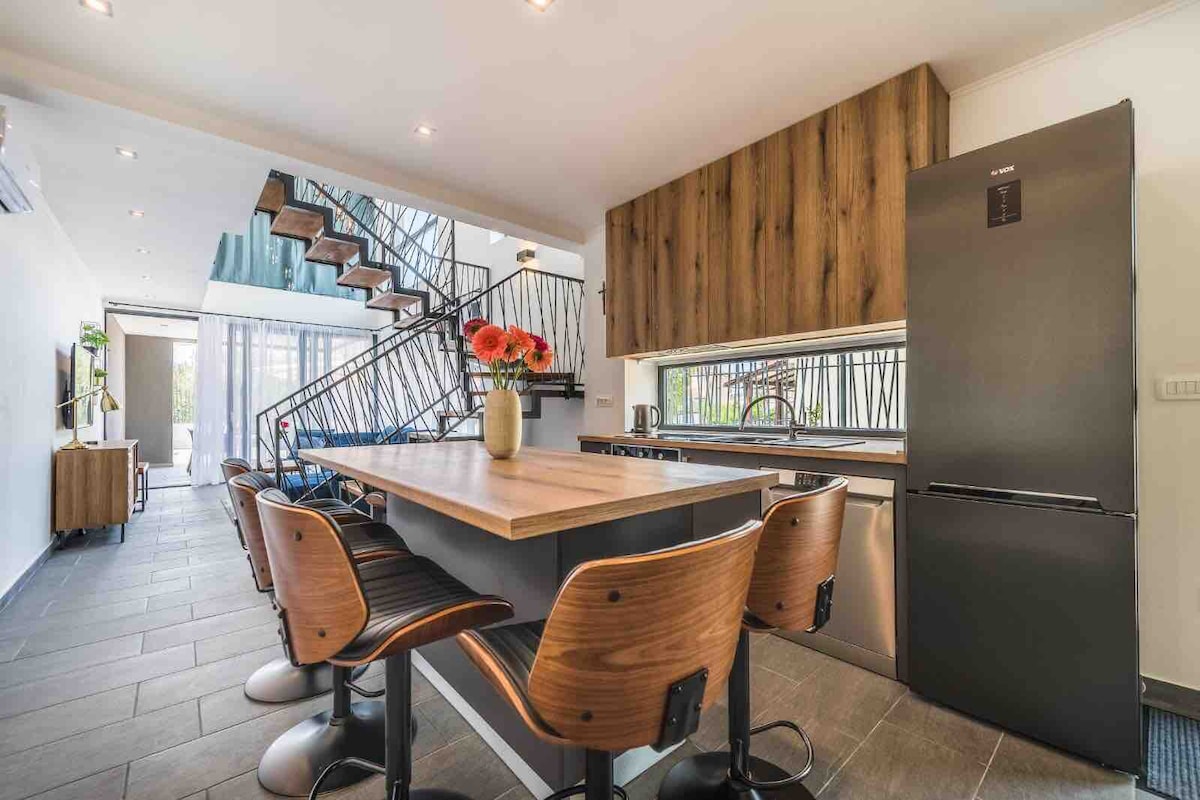 El ático Villa Fresca tiene una hermosa vista del mar Adriático. Villa Fresca es una villa de playa en Bibinje, un pequeño lugar tranquilo cerca de Zadar. La característica única de la villa no es solo la vista panorámica de Villa Fresce y el mar Adriático. La villa también tiene una historia de fondo interesante. Villa Fresca está construida en el sitio arqueológico de una villa romana que data del siglo I. En honor a la villa romana de la planta baja de Villa Fresca, hay un mosaico bien conservado de la villa romana, y sus restos se pueden ver en el mar frente a la Villa.