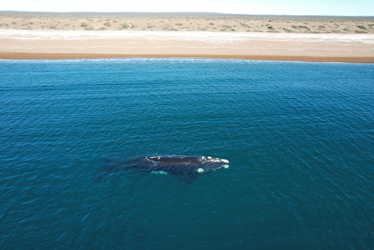Exclusivo y unico penthouse familiar frente al mar, con la mejor vista envolvente al golfo, las ballenas, y la ciudad de Puerto Madryn. Ubicado a solo pocos metros del centro de la ciudad y los mejores restaurantes. Extenso departamento con 120 m2 y un amplio ventanal de 8 m de ancho y terraza. Huéspedes de todos los lugares del mundo son bienvenidos para disfrutar de la belleza de la ciudad, e inclusive poder hacer avistaje de ballenas desde la comodidad del balcón!