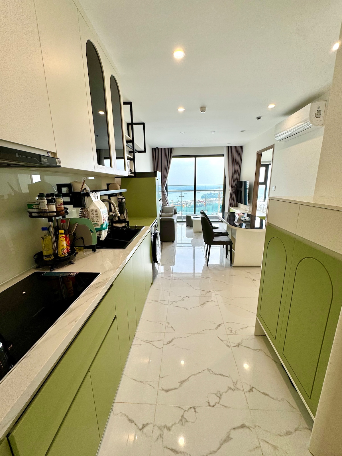 Este alojamiento único está diseñado para disfrutar de una experiencia tranquila. Con una puerta corrediza inteligente, tu sala de estar y tu dormitorio están fácilmente conectados para maximizar la espaciosa casa de 50 m2. Caminando por el puente BaSon entre el condominio y D1, puedes sentir la brisa del río Saigón y las espectaculares vistas de la ciudad. Con solo 5 a 10 minutos en taxi, puedes llegar al centro de la ciudad.