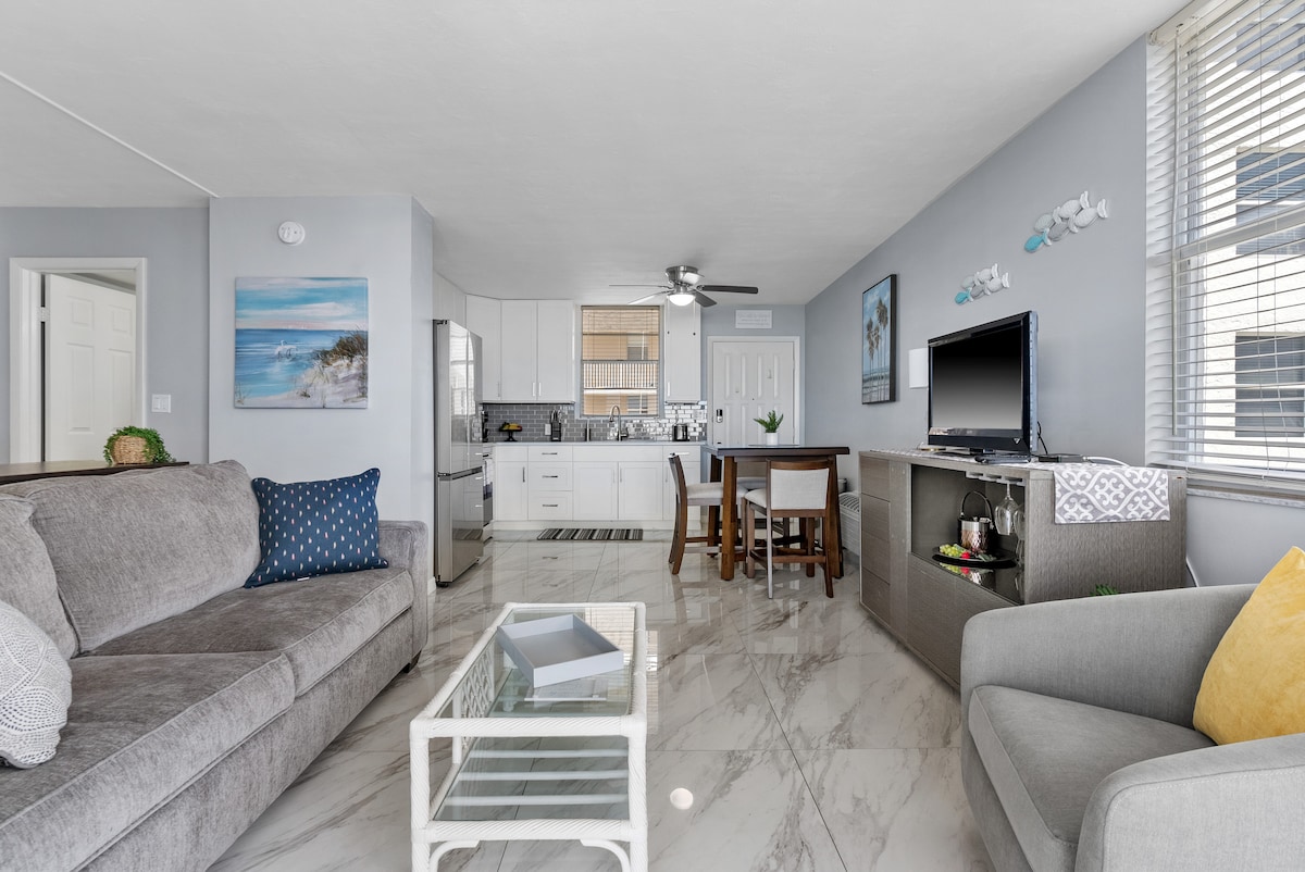¡Te damos la bienvenida a Tide & Seek! Este elegante apartamento de 2 dormitorios y 2 baños en Gull Wing Beach Resort está perfectamente situado en el tranquilo extremo sur de Fort Myers Beach. Este refugio en el octavo piso, con capacidad para 6 personas, cuenta con un espacio abierto, cocina completa con barra de café y vino, y un balcón con vistas al Golfo. Con servicios de resort que incluyen una piscina climatizada, spa, zona de barbacoa y acceso directo a la playa, es el lugar ideal para que las familias o los amigos se relajen en la comodidad de la costa.