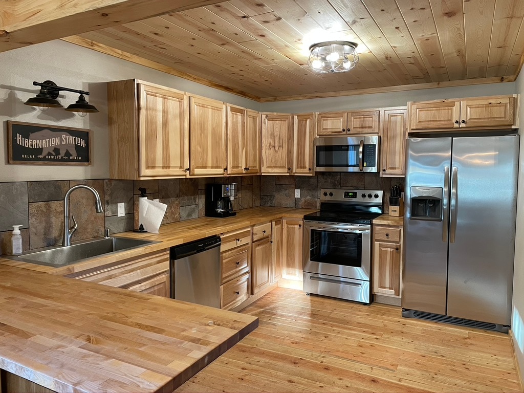 Welcome to your cozy tiny home retreat minutes from downtown Sheridan, WY. This charming tiny home is the perfect blend of rustic comfort and style. This tiny home will feel spacious with its vaulted ceilings and loft. The tiny home has a queen bed downstairs in a closed off bedroom. Enjoy the open loft with one queen bed and a fold out futon, a great place for kids to enjoy the tiny home. A fully equipped kitchenette, and fast Wifi await.