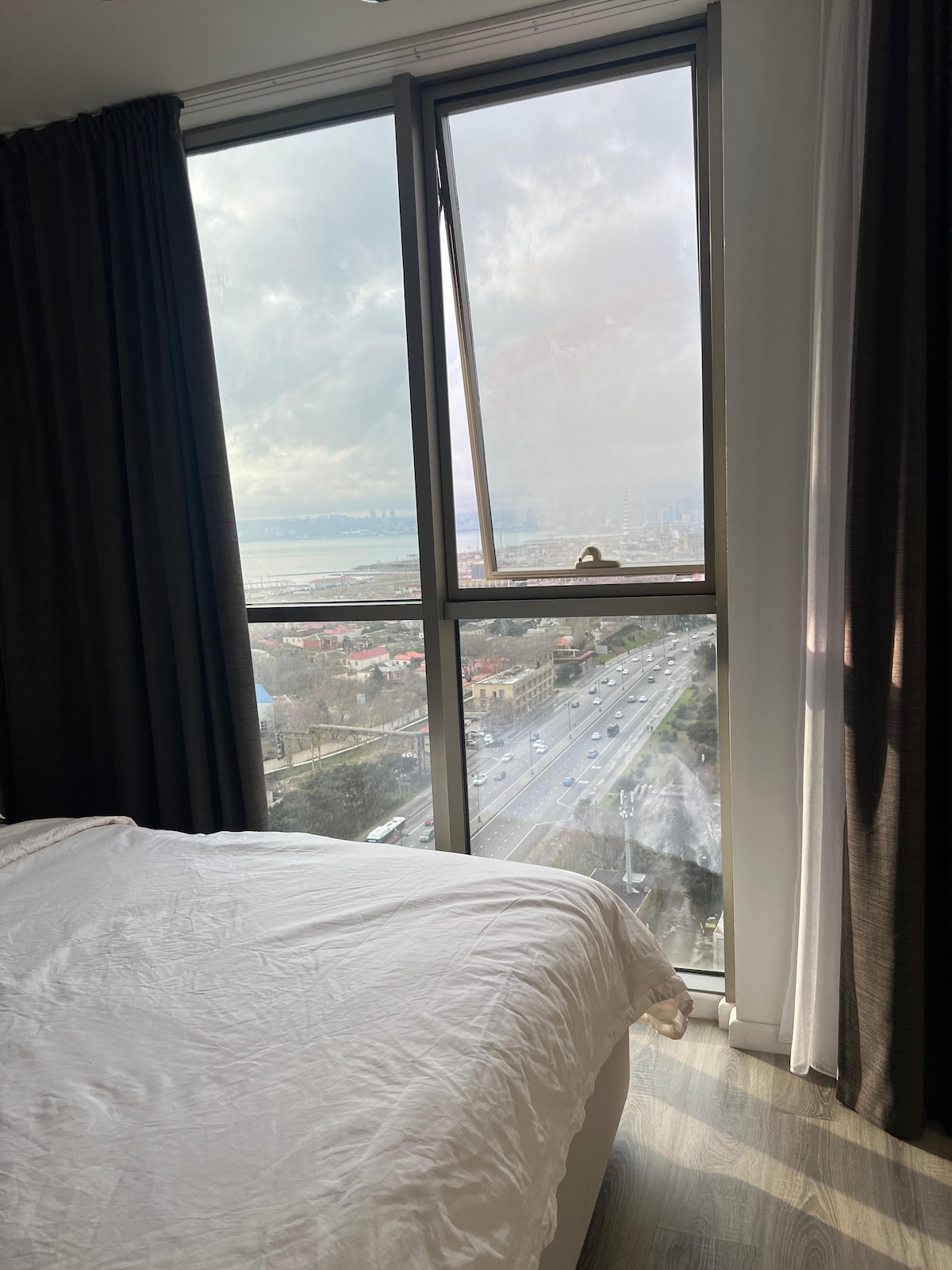 Departamento frente al mar • Enfrente del bulevar de Bakú Entre el 5 % de los mejores en Airbnb • Favorito de los huéspedes • Superanfitrión Departamento de diseño con vistas al mar Caspio, aire fresco y un ambiente tranquilo: un oasis cerca del centro de Bakú. — Interior moderno y acogedor — Cocina totalmente equipada. — Balcón con sol matutino ☀️ — Wi-Fi rápido y aire acondicionado — Estacionamiento debajo del edificio 🚗 Ubicación de📍 prestigio Camine hasta el bulevar de Bakú, Highland Park, las Torres de la Llama y la Ciudad Vieja. Restaurantes, cafeterías y tiendas en los alrededores.