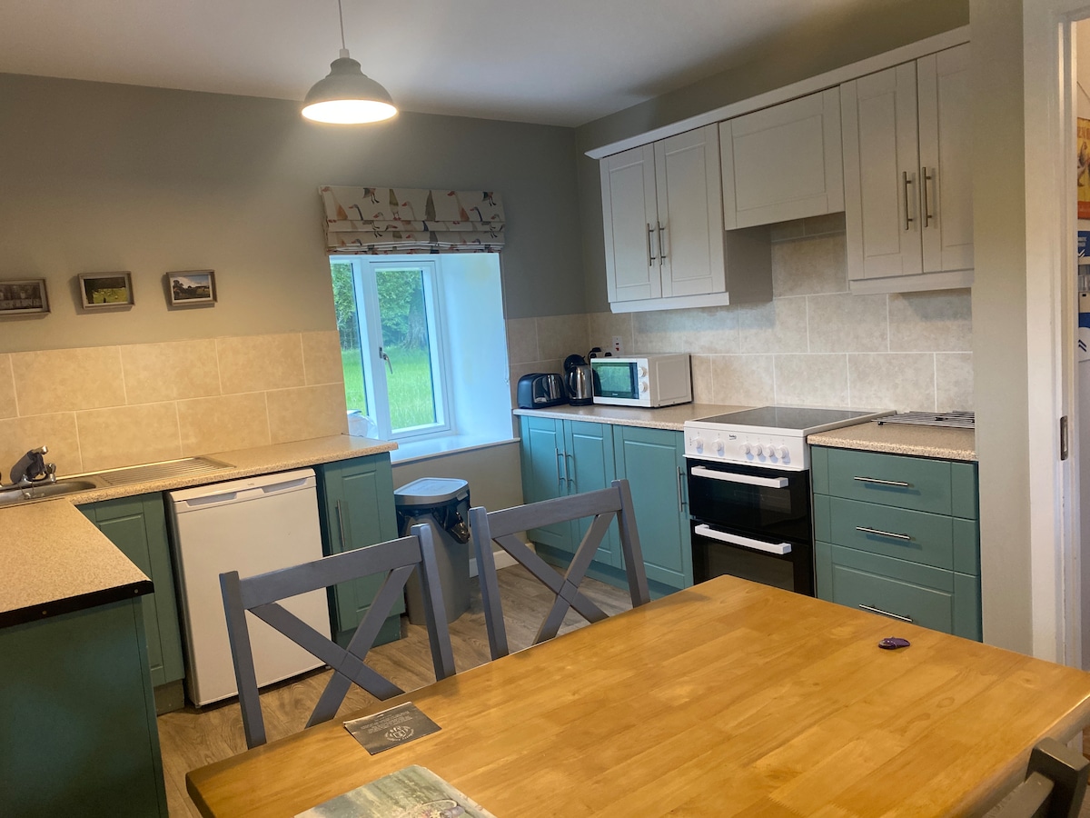 Our cottage is nestled in the beautiful Slieve Blooms mountains. This cottage boasts a traditional thatched roof surrounding by fantastic countryside. The cottage features two cozy bedrooms with comfortable beds and soft linens. The fully equipped kitchen is perfect for cooking up hearty meals with fresh, locally-sourced ingredients. Warm up by the fireplace in the inviting living room, where you can curl up with a good book or watch a movie on the flat-screen TV.