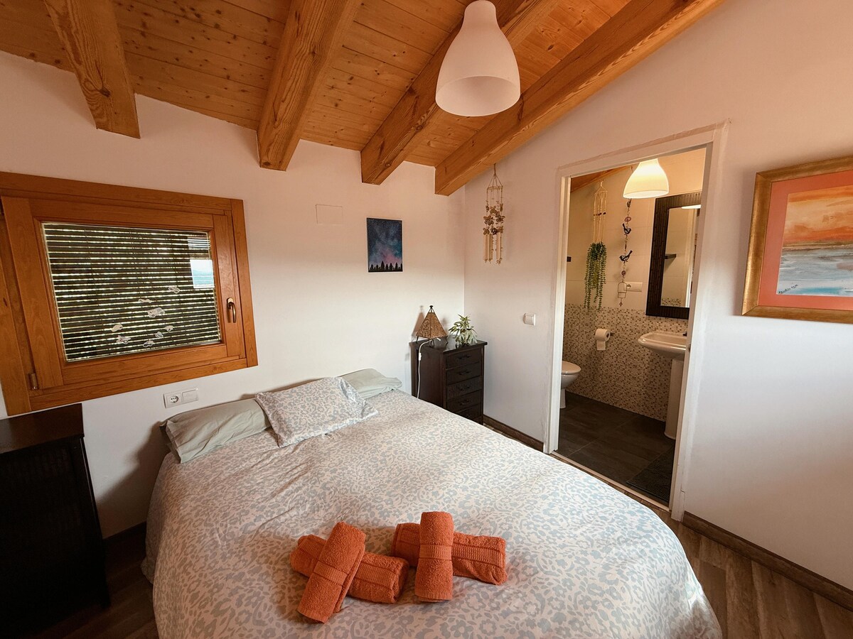 Una borda antaño para animales, herramientas o para algún pastor . Esta habitación (total 20 m2) de 2 niveles con su cuarto de baño y kitchenet/ comedor en la planta baja , tiene su cama doble arriba con vistas a los campos del Pre pirineo en la Sierra de Javierre. Tiene su entrada independiente de La Abadía y tiene su propio jardín alrededor de la borda. A 10 minutos de la salida CALDEARENAS de la autopista A 23 (E7).