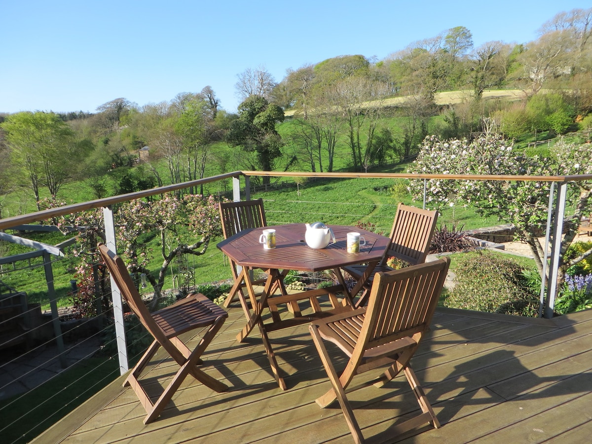 Amplio, independiente, ala de casa de campo recientemente reformada en un pueblo aislado con fantásticas vistas al estuario y más allá. Jardín independiente y zona de barbacoa, cocina totalmente equipada, moderno cuarto de ducha, amplio salón con sofás y TV inteligente, dormitorio doble, cama tamaño king, TV y vigas rústicas. Relájate en el jardín, explora la zona. Camina, corre, monta en bicicleta, juega al golf, nada, haz surf. Increíbles playas, dunas, páramos, colinas onduladas, costa escarpada, a poca distancia en coche. A una milla de la ruta ciclista Tarka Trail.
