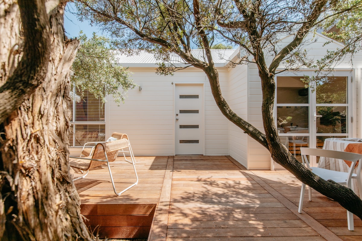 Surrounded by native moonah trees in a lovely quiet neighbourhood, is this private guest apartment. Stylishly decorated, thoughtfully designed, and just 800m from the popular Tyrone Beach. Enjoy the light filled but private indoor space, which is well appointed yet compact and with a nice fresh feel. Lounge about the stylish resort-like under cover outdoor space which has been a huge hit with guests. Very suitable for individuals or romantic couples, come and recharge your batteries.