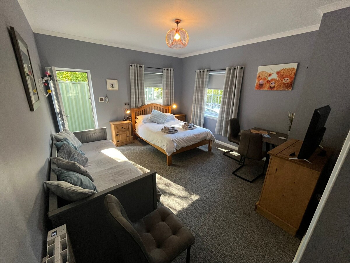 The Annexe @18 Perth Place es un garaje recientemente convertido que consta de un gran dormitorio doble con baño privado, cocina y una zona de estar al aire libre. El anexo tiene su propia entrada privada con aparcamiento y se encuentra dentro de los terrenos de nuestra casa familiar. Estamos situados en una zona residencial tranquila a 1,9 millas del centro de la ciudad de Fort William, hay acceso desde nuestro jardín al circuito de Cow Hill y estamos a 0,1 millas de la parada de autobús más cercana.