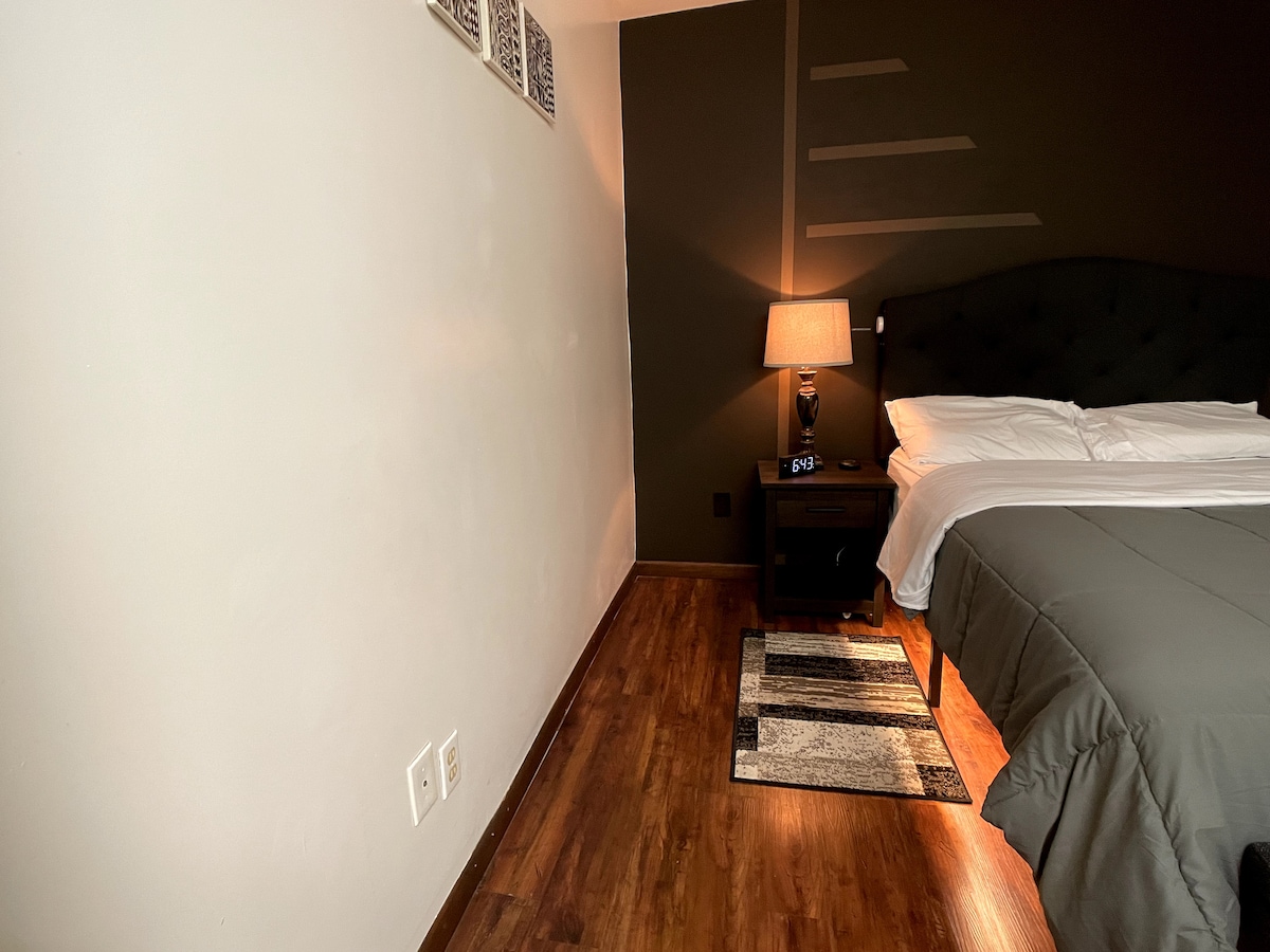 If this listing is not available please check out my other listings This 1st floor loft features an open concept kitchen & living room with stove, refrigerator & microwave. A queen sleeper sofa & 46" smart TV are in the living room. The bedroom has a king bed, dresser & recliner. Washer & dryer can be found in the bathroom along with a soaker jacuzzi tub. A/C mini splits help cool down the space. This is a mix use property with periment tenants as well as other guest. Noise is typically low