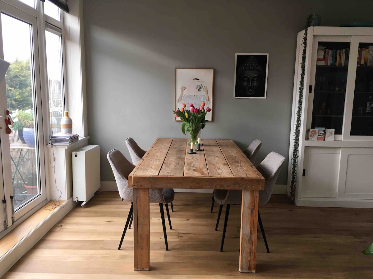 ~ FAMILIAS Y ADULTOS, sin JÓVENES /JÓVENES~ Apartamento totalmente renovado (aproximadamente 100 m2), listo para que descubras Haarlem/Ámsterdam/Bloemendaal y sus alrededores. Ámsterdam está a solo 7 minutos en tren de la estación de tren Overveen o a 25 minutos de la estación de trenes Bloemendaal. La playa está a 15 minutos en auto. ESTACIONAMIENTO GRATUITO, PLAYA CERCA - PERFECTO PARA FAMILIAS -
