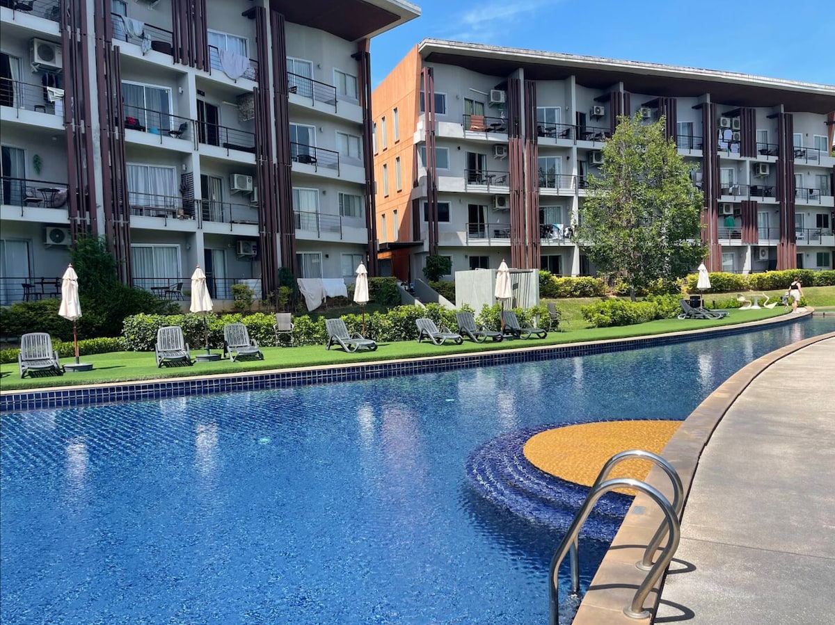 Modern 32m² Gem in Bophut Largest in its category! New stylish apartment with a King-size bed and a 12m² pool-view terrace. Prime location: golf club nearby, walk to Makro/7-Eleven, 6 min to Fisherman's Village, 10 min to Chaweng. Fully equipped: kitchen, washing machine, safe box, microwave, coffee maker and fast Wi-Fi. Resort-style residence with pools, gym and sauna. Perfect for holidays and long stays. Hosted by an experienced pro to ensure you will be happy. Book your stay now!