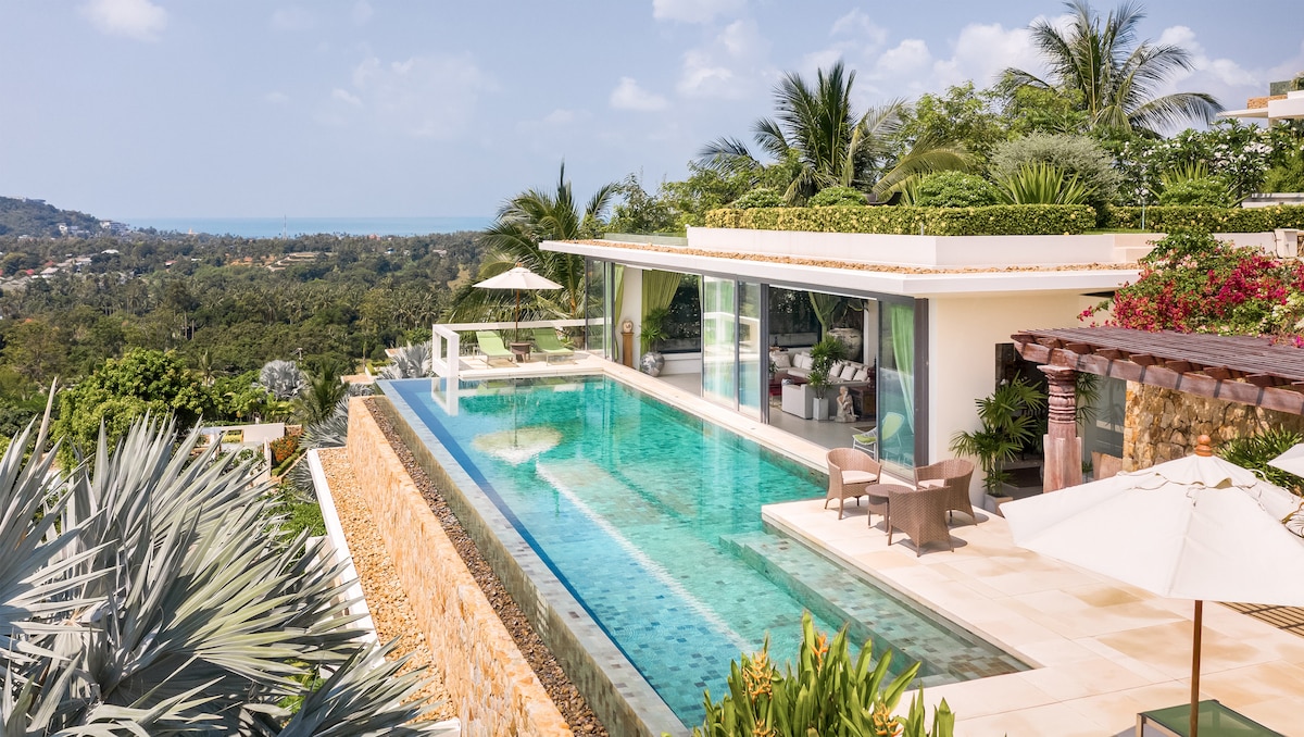 Villa Purana, Panacea Estate, Koh Samui | By The Luxe Nomad HIGHLIGHTS - Ideal choice for families or groups of friends. - Wake up to amazing ocean views. - Relax by the 20-meter infinity pool surrounded by tropical greenery. - Just a short drive away from the vibrant Bophut village with its glittering lights and the tranquil Maenam Beach. - Complimentary Wi-Fi throughout property.